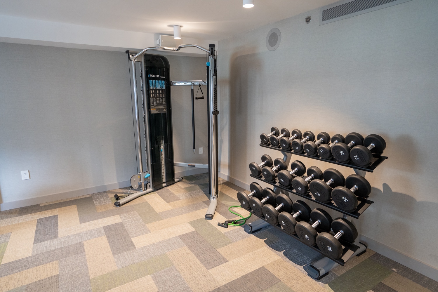 The fitness centre at Kimpton Saint George is fairly modest, and leaves a fair bit to be desired. There’s enough equipment for a decent session, including treadmills, an elliptical machine, free weights, and a cable machine, but it’s not quite a cutting-edge facility.
