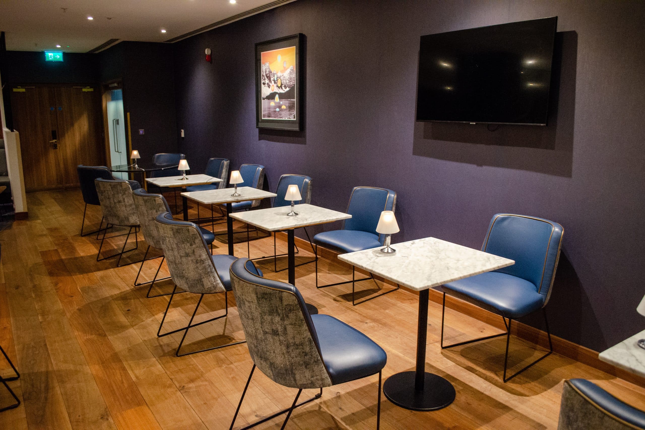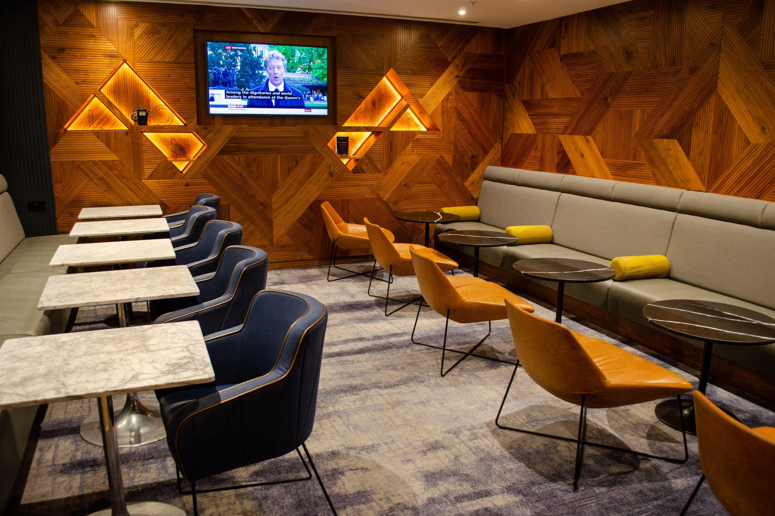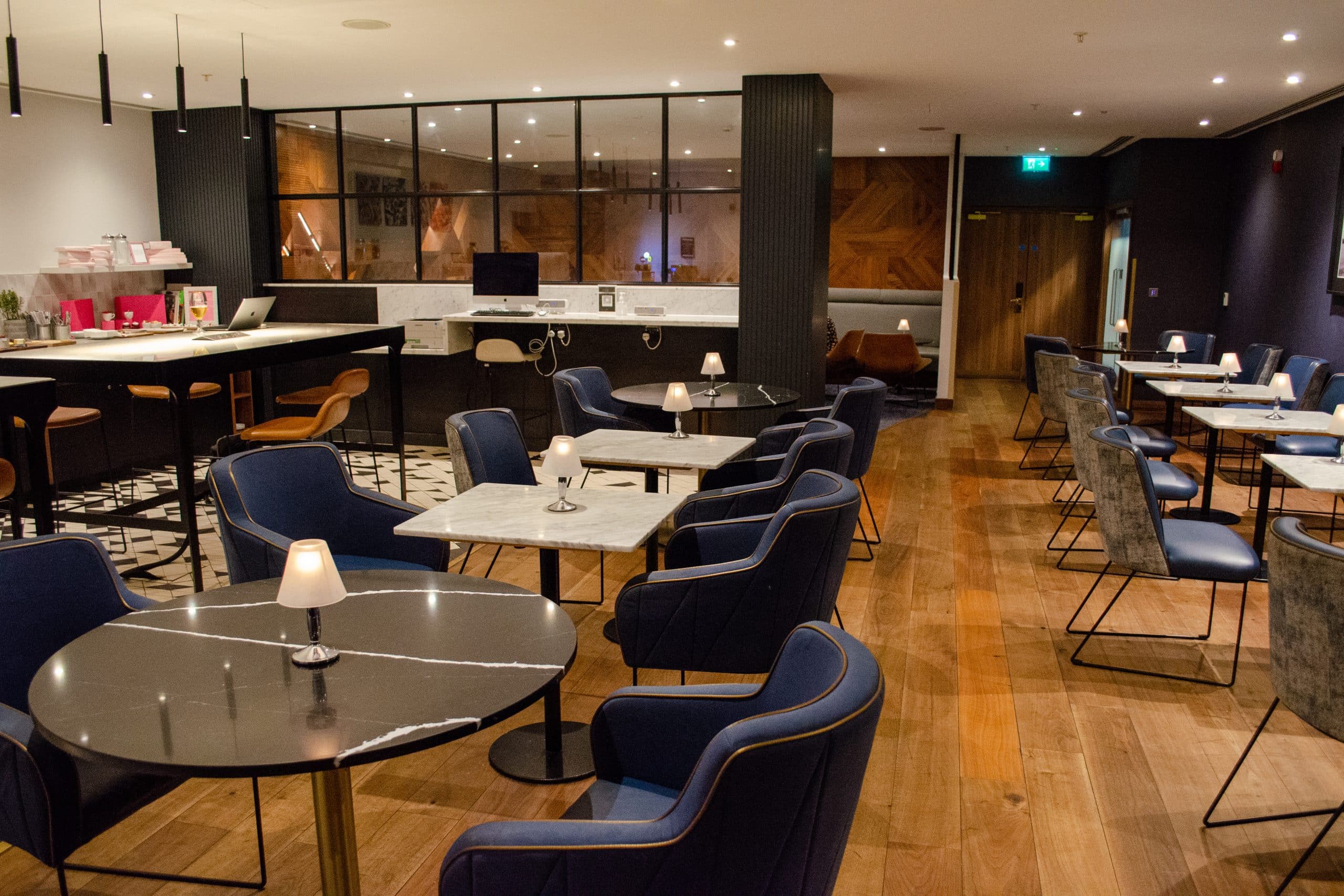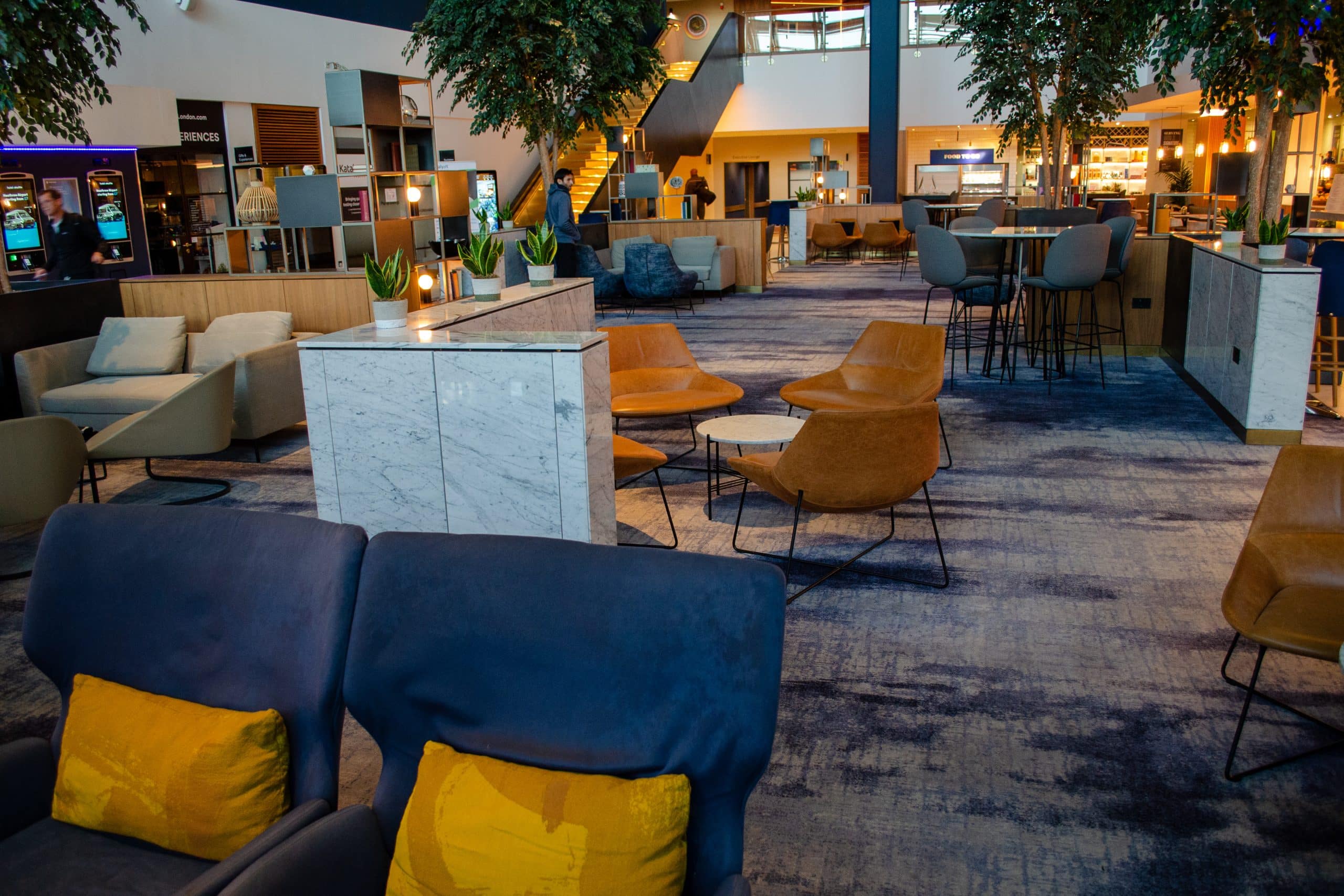In the main part of the lounge, you’ll find a mixture of tables set up for dining in pairs. There are also two high-top tables close to the buffet area.