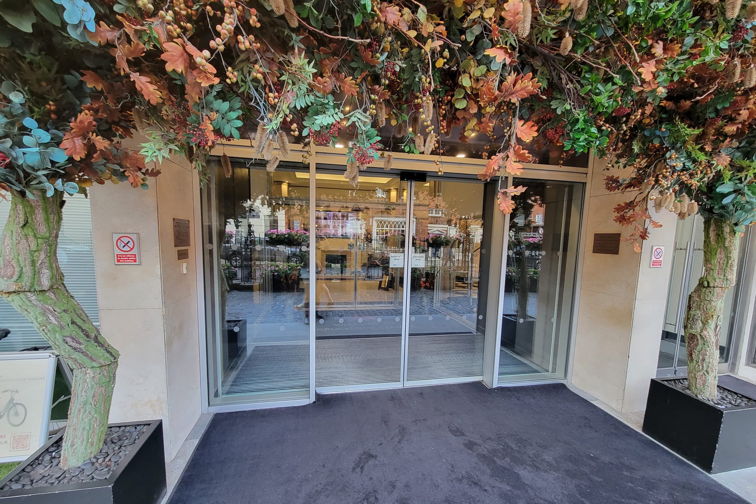 The hotel, as its name would suggest, is located right next to Grosvenor Square in Mayfair. This neighbourhood is a hub of the business and diplomatic communities of London, and comes with the price tags to match.