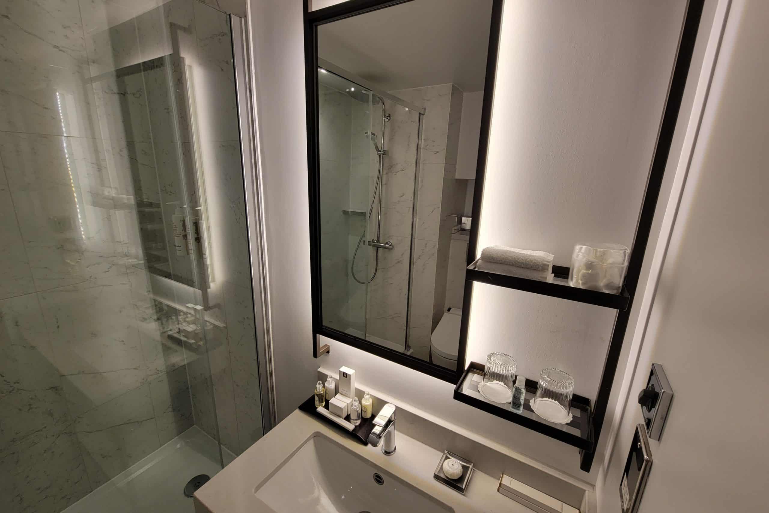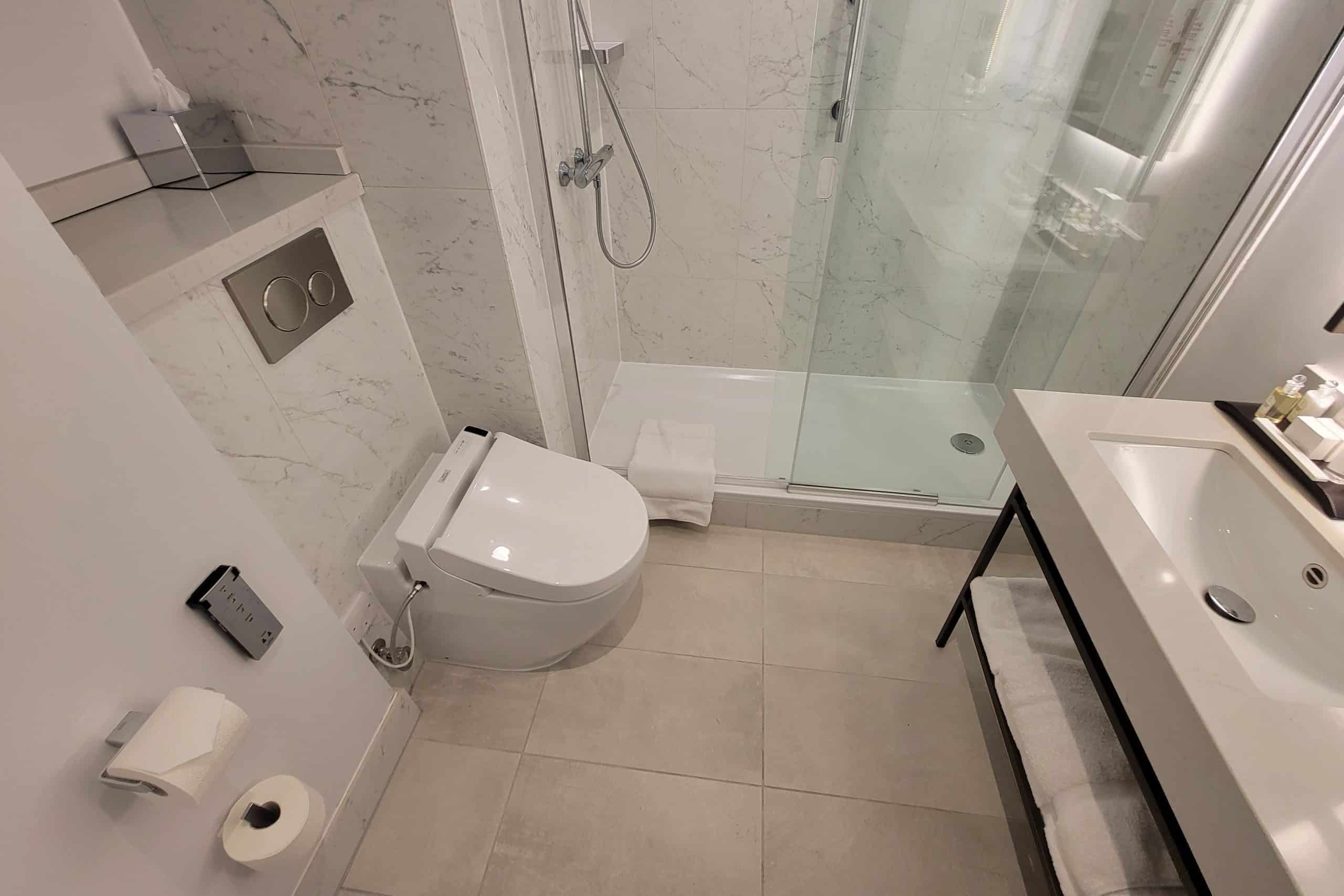 The bathroom was by far the nicest part of the suite, as it featured an all-white marble interior, generous walk-in shower, various premium amenities, and lots of space. The flow rate of the water was also perfect, which I’d been a bit concerned about as the hotel is on the older side, but I’m happy to report that we had no issues.