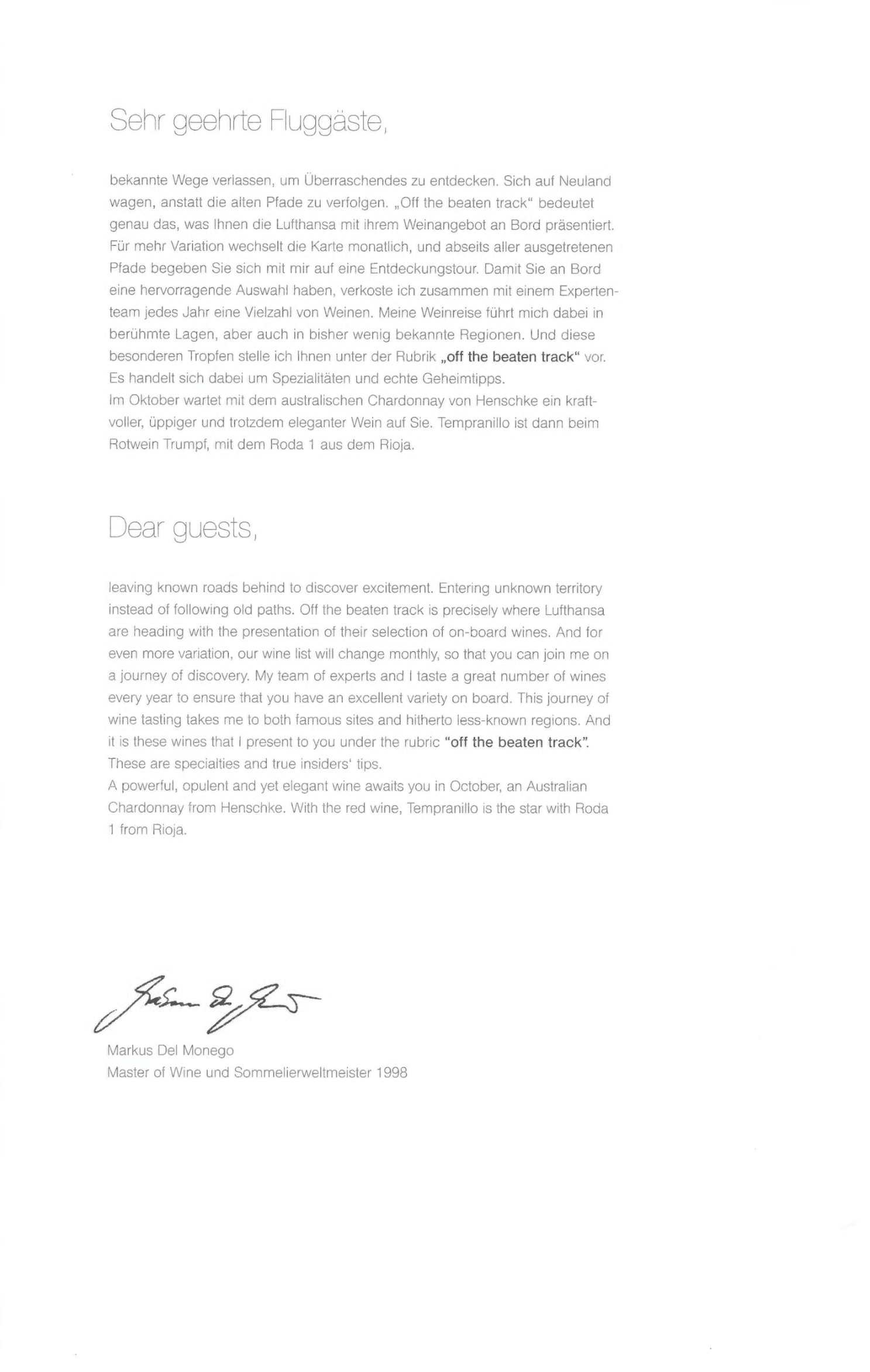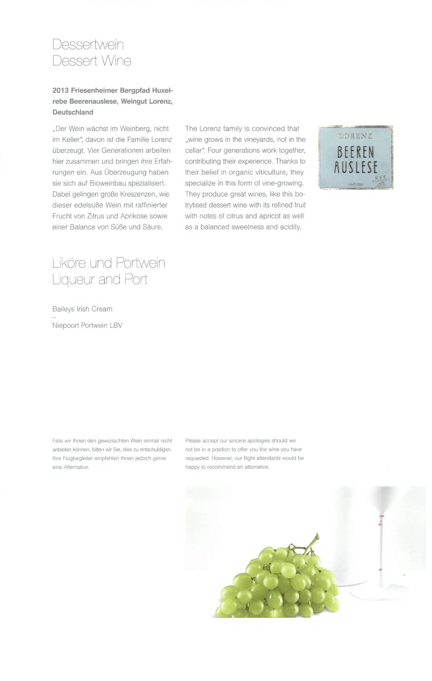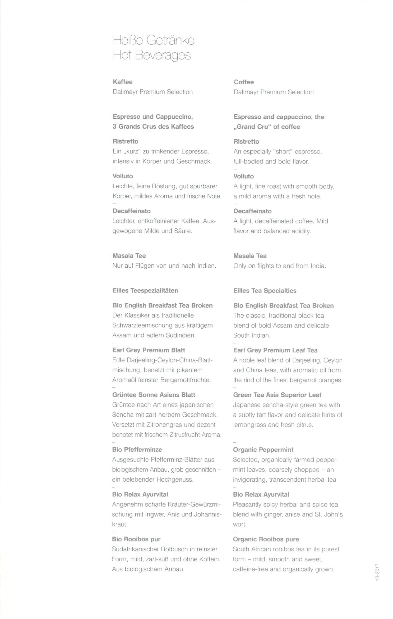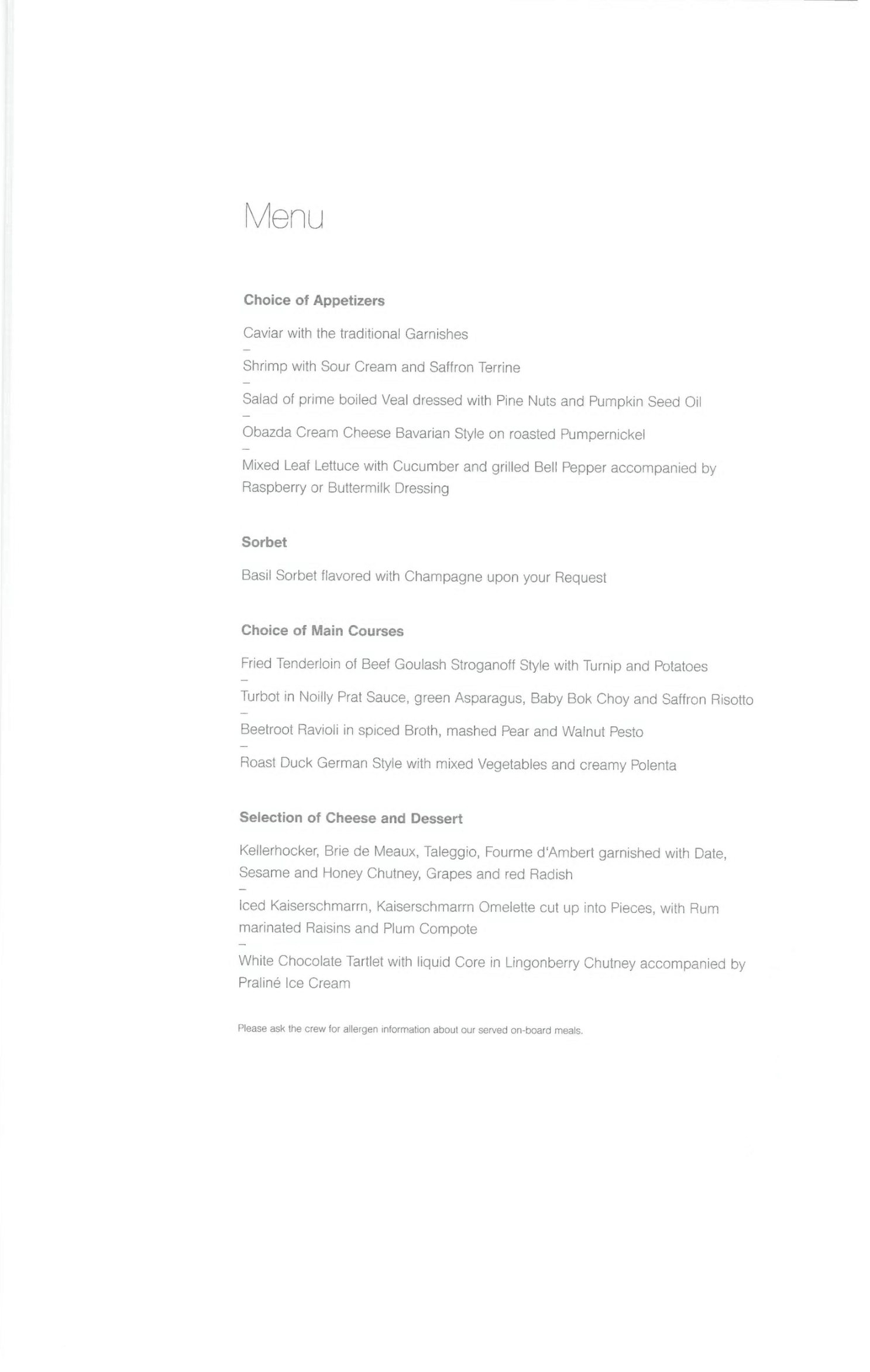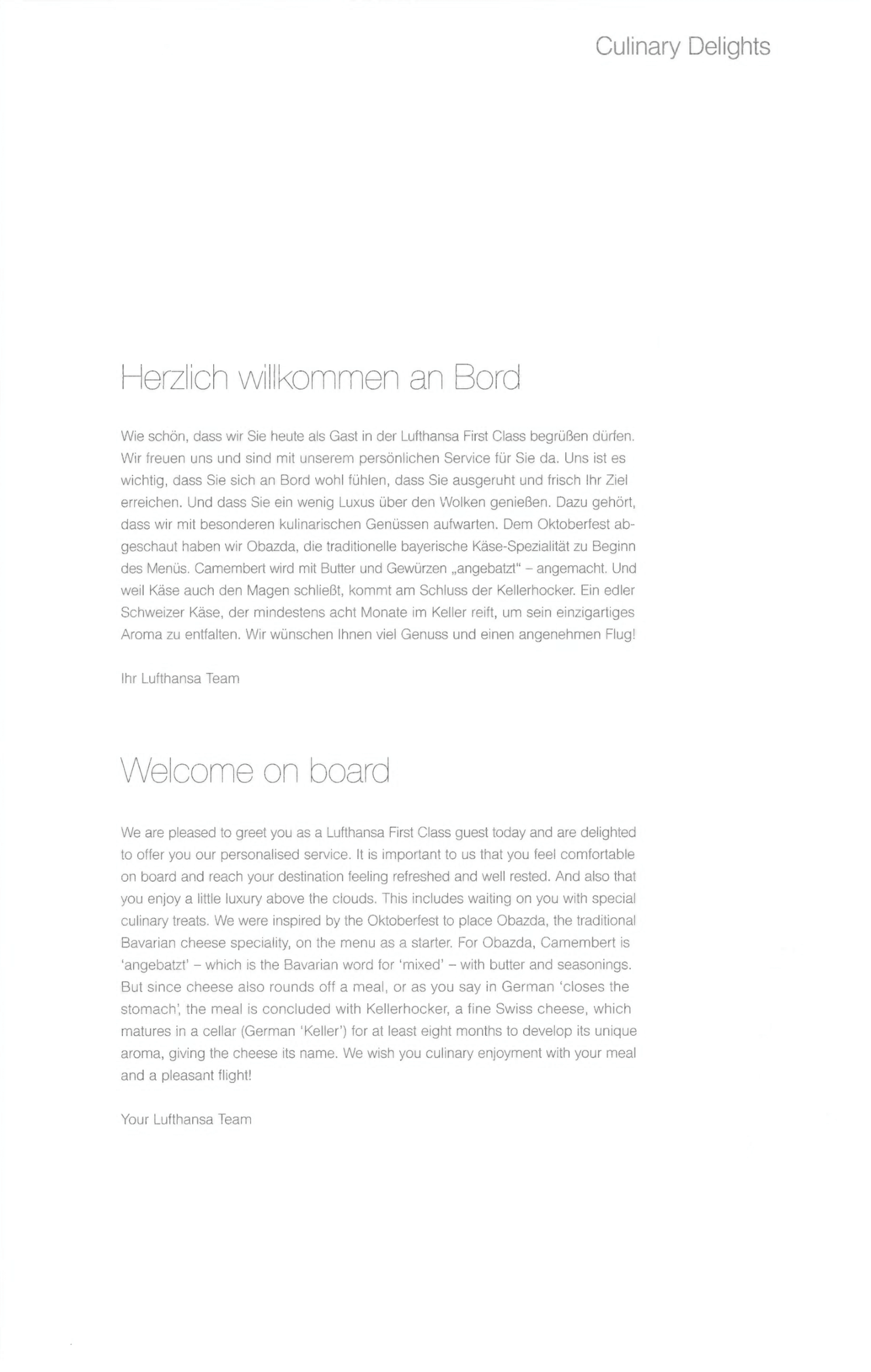 Lufthansa First Class – Menus