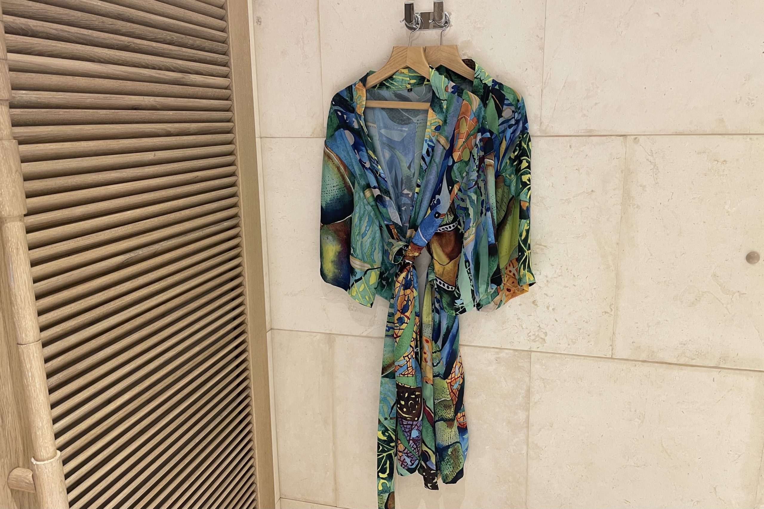 All the bath amenities, like the shower gel, soaps, etc., are all made locally, and so are the kimonos that are at your disposal for the duration of your stay.