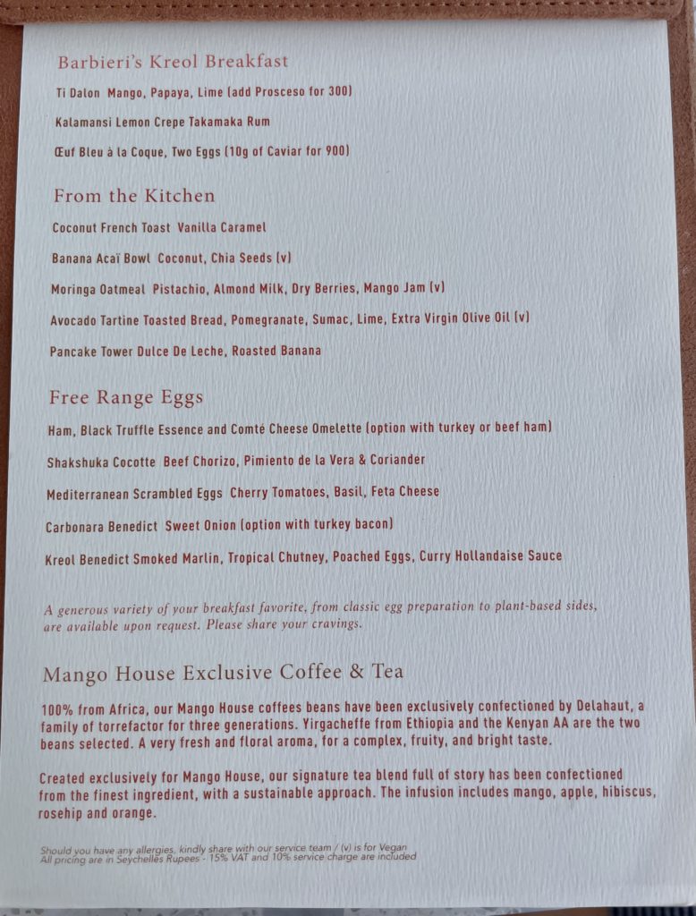 Mango House Seychelles – Breakfast