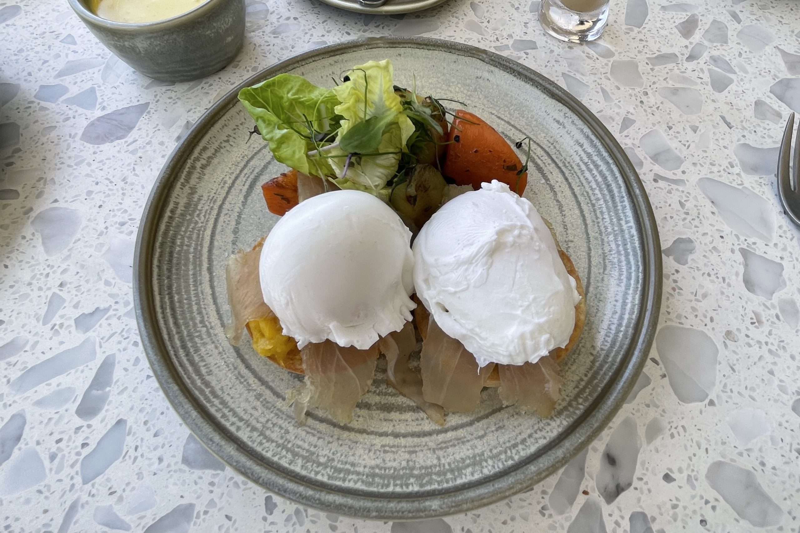 Breakfast is a combination of a staff-served continental buffet and made-to-order items off a menu. The breakfast here was the best I had on our trip.