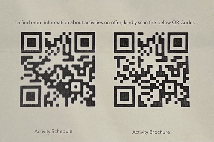 For a complete guide to Mango House’s onsite and offsite activities, scan the QR codes below: