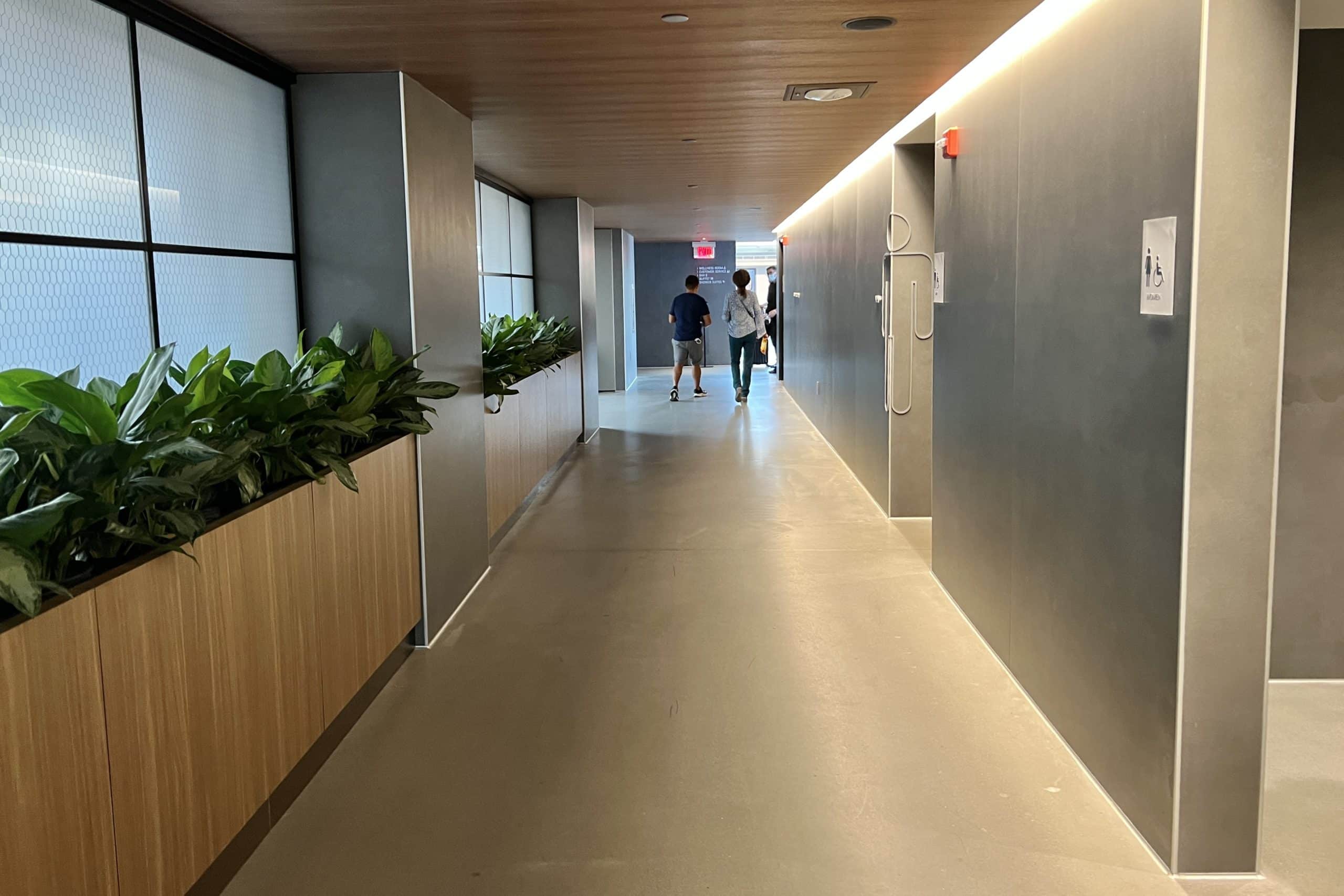Continuing on, you’ll walk down main hallway of the lounge where the washrooms are located. At the end of the hallway, it opens up into the main dining area.