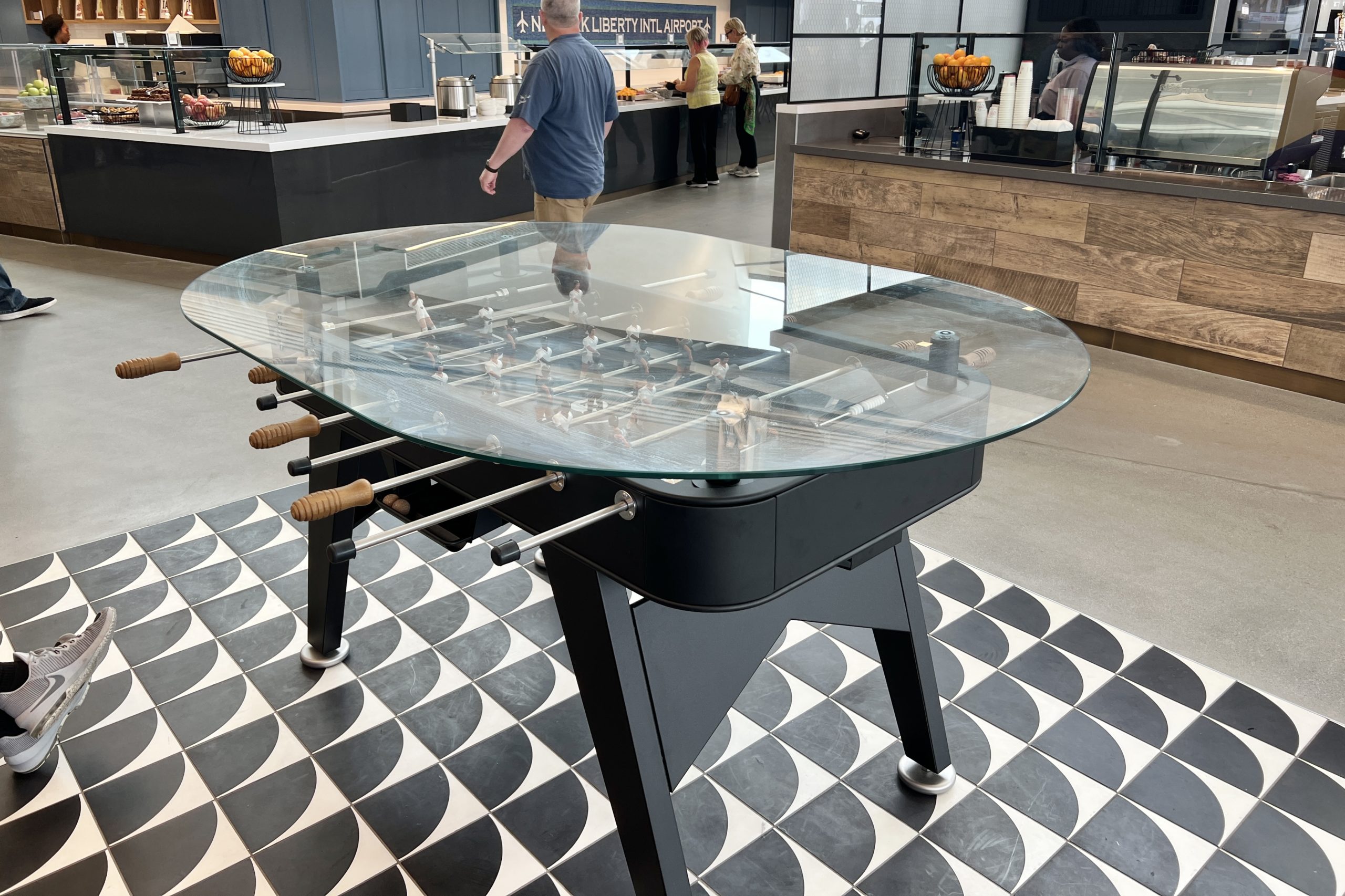 Finally, for those who are in the mood for a little friendly competition at the airport, there is a single foosball table for guests to enjoy.