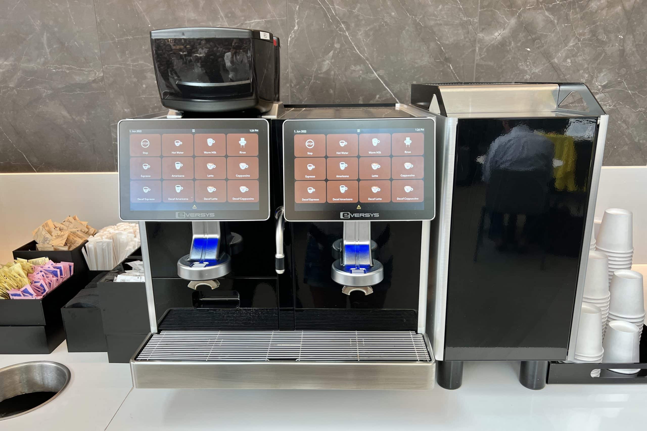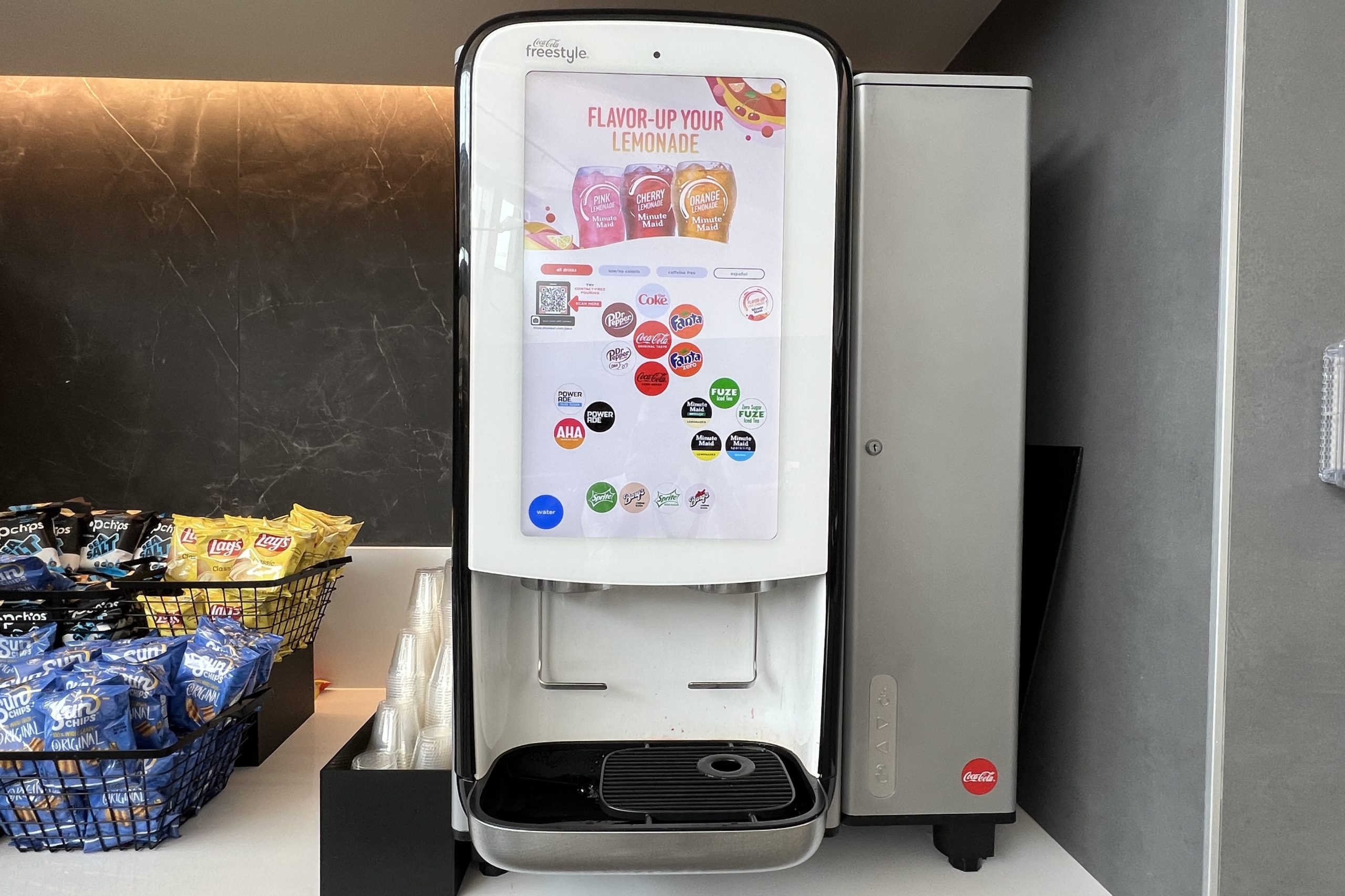 Beverage stations are also located nearby, with hot beverage dispensers and Coke Freestyle machines.