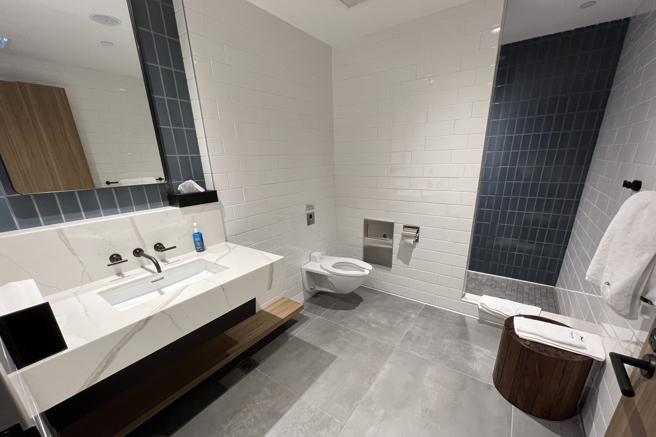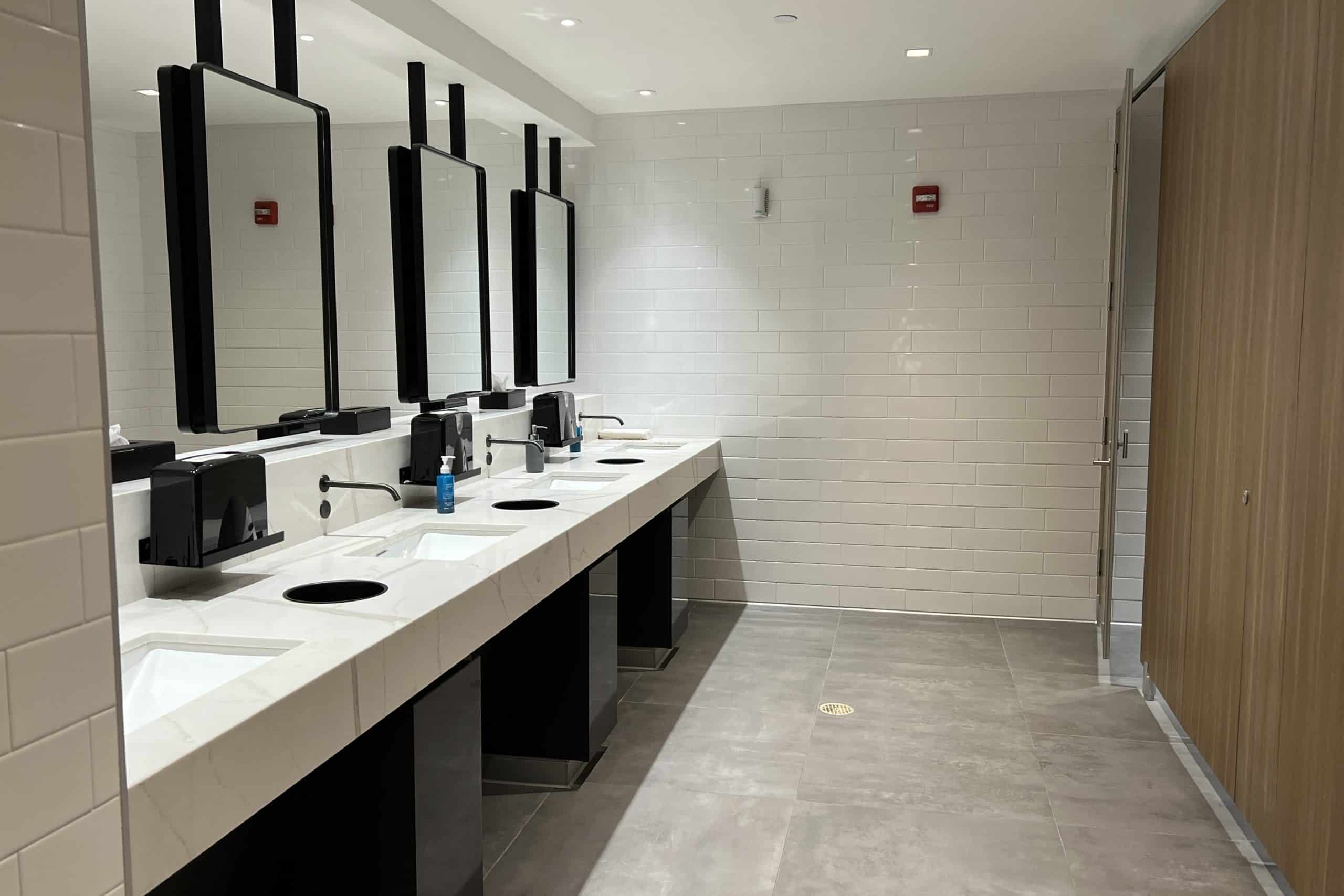 The restrooms were clean, large, and spacious, which is befitting for a lounge this size. The decor matches that of the rest of the lounge, with black metal and wooden accents.