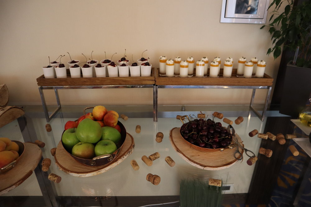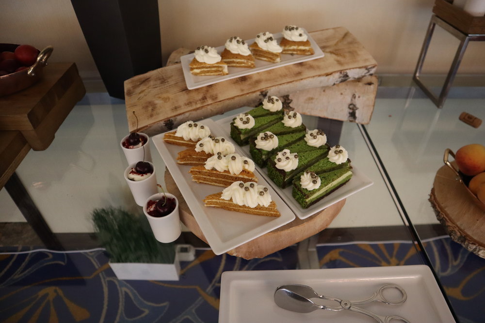 Dessert did not disappoint either. There were several fancy cakes and parfaits, as well as a variety of fresh fruit, to choose from. And to top it off, you could take advantage of complimentary wine and beer, as well as tea, coffee, juice, and soft drinks.