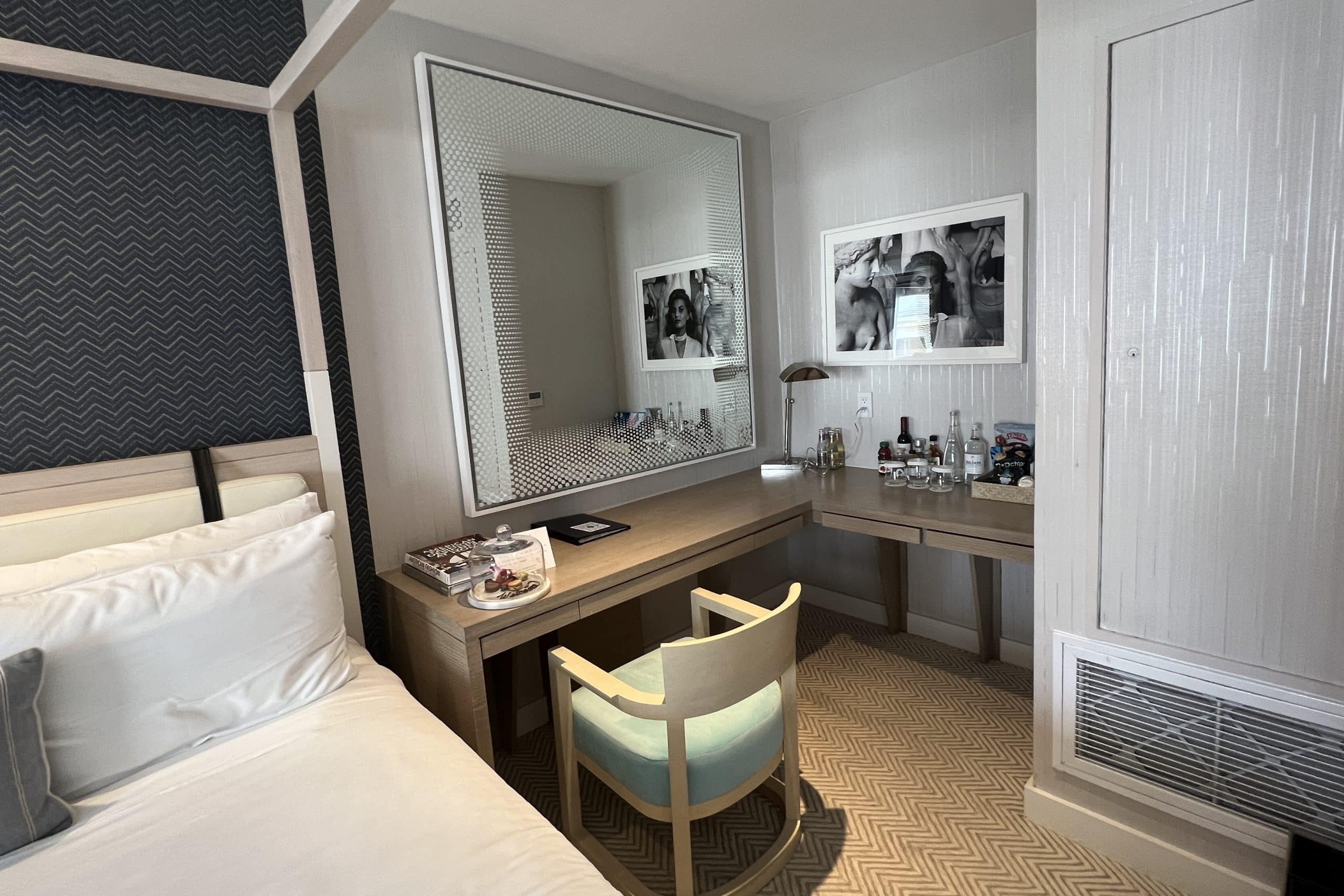 The window was also smaller, but still allowed in a good amount of sunlight. The minibar was located on the desk, rather than having its own cupboard.