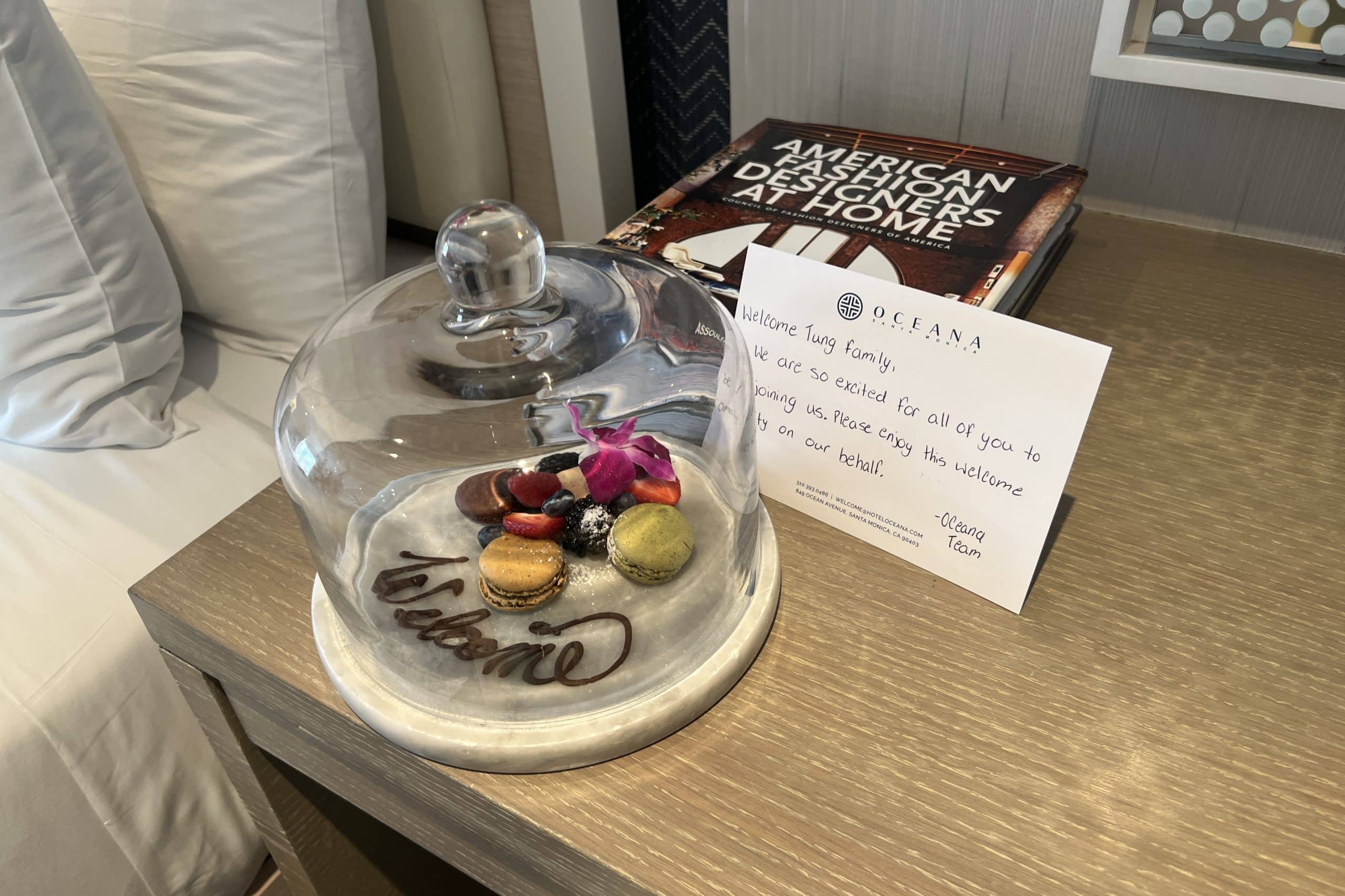 Although we never received a welcome drink, in our room was a second welcome amenity, which consisted of a small platter of macaroons and berries alongside a welcome note.