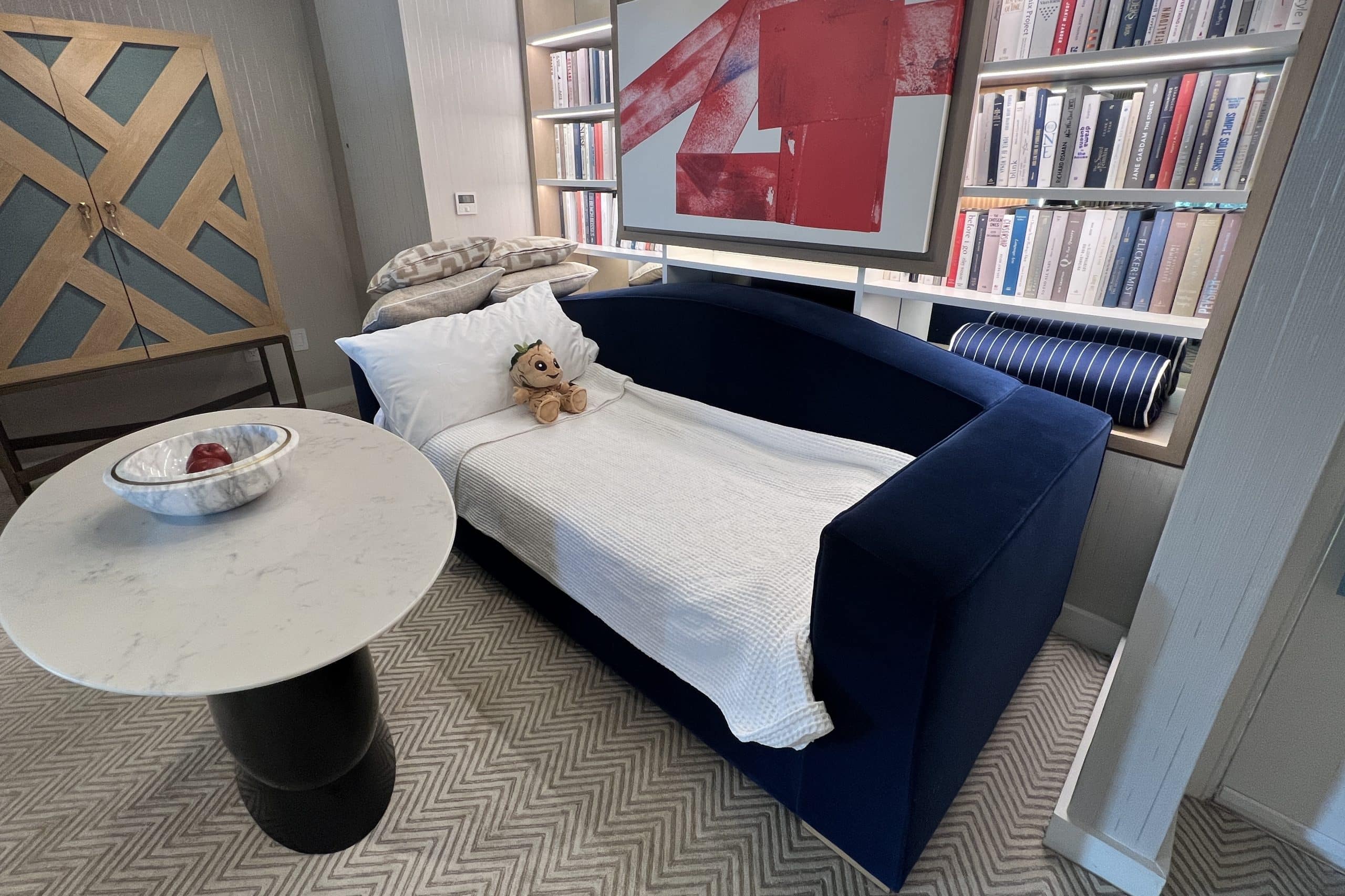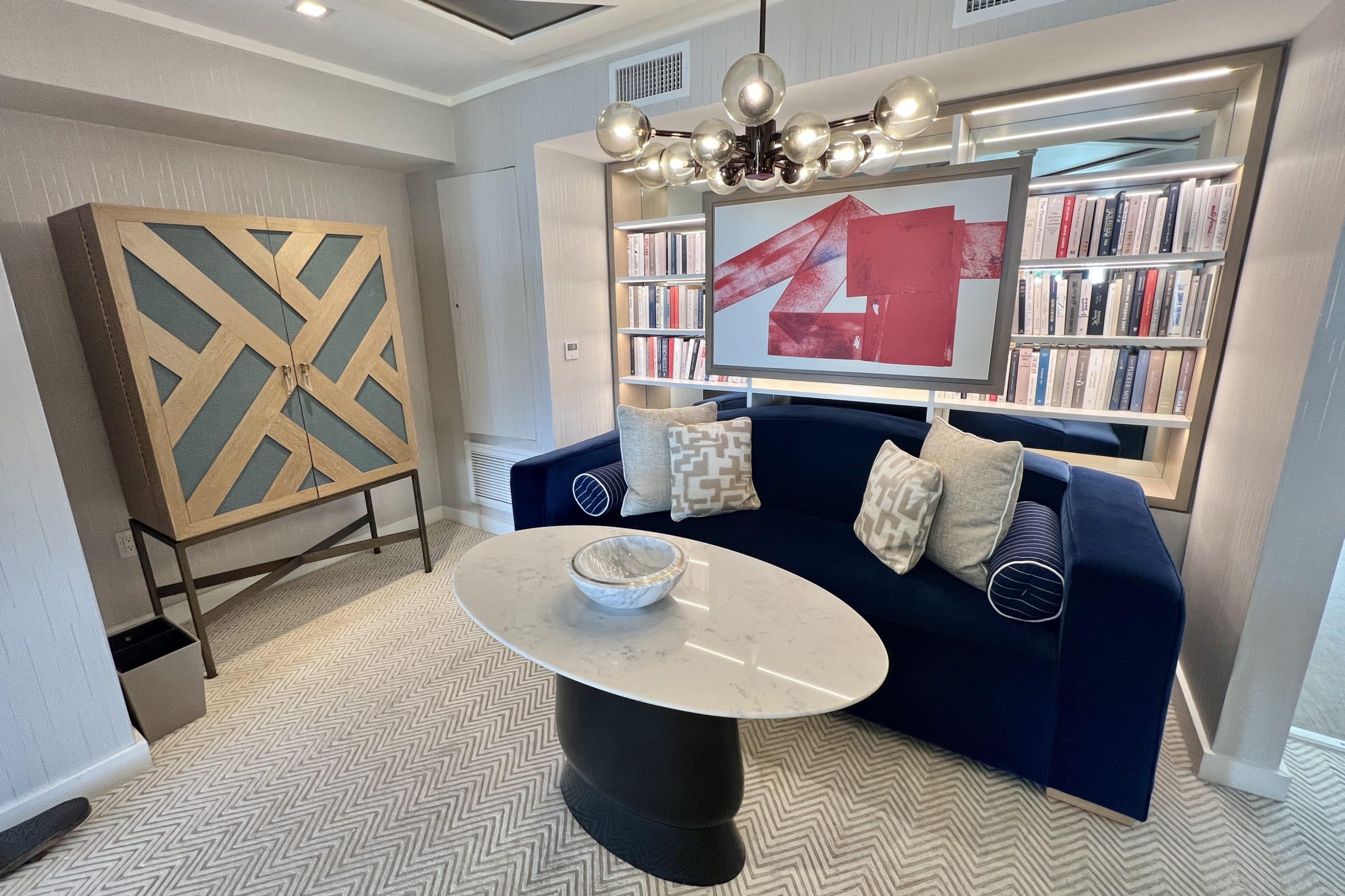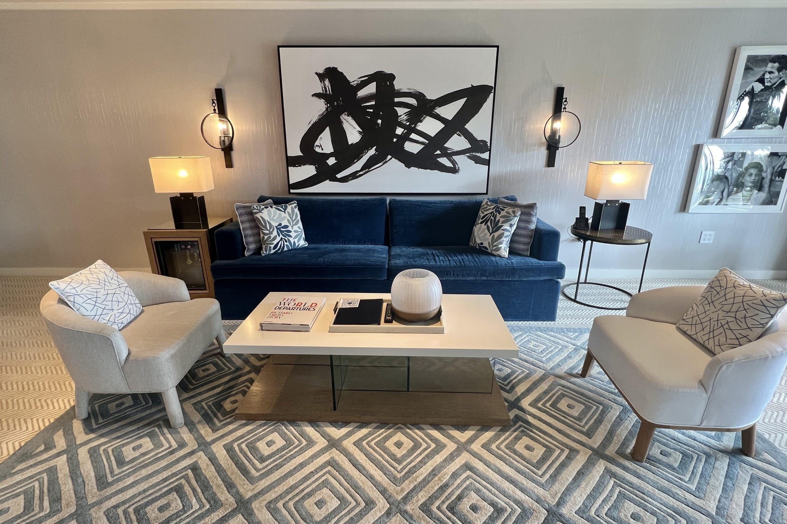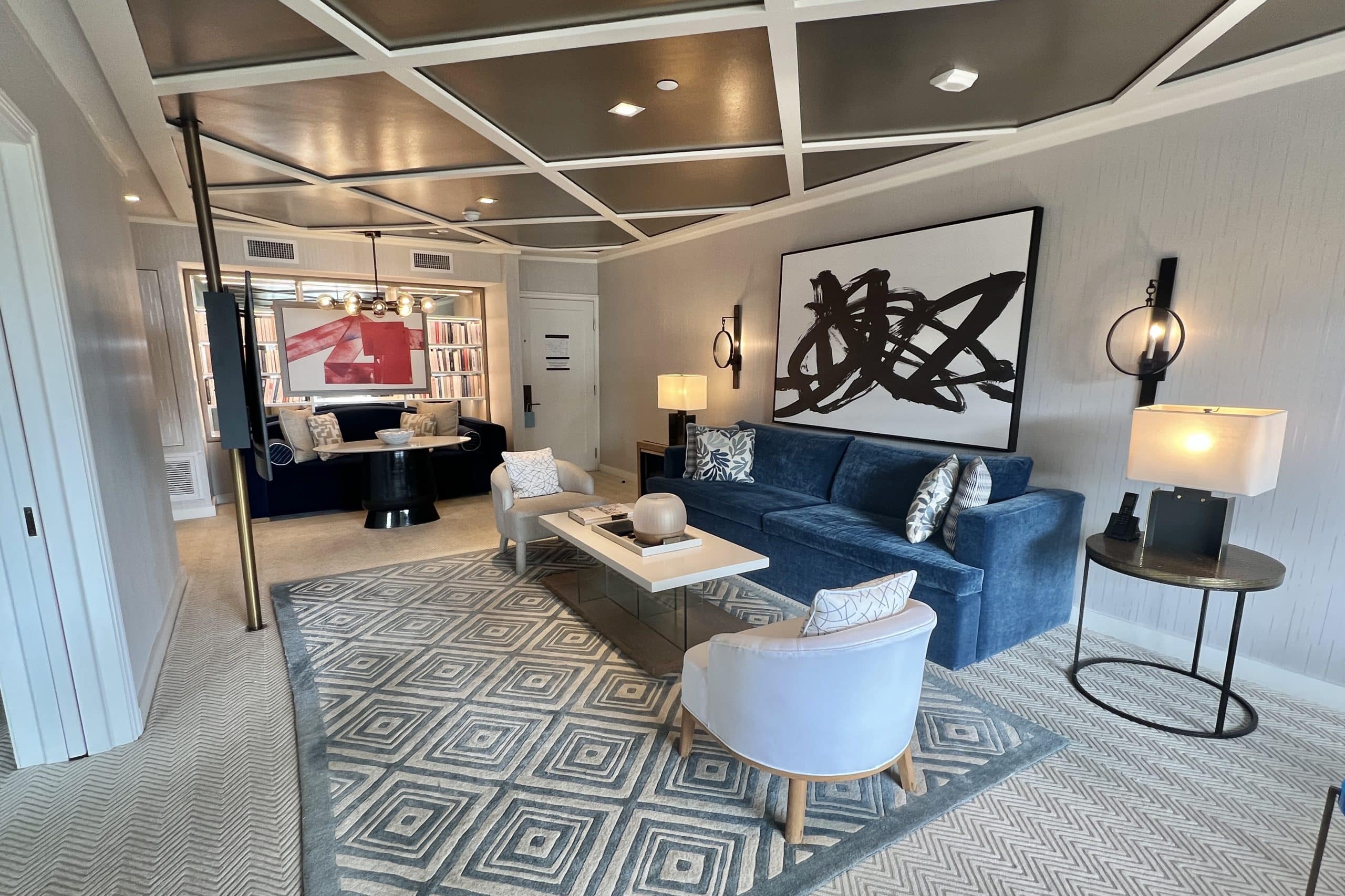 The suite was decorated in light relaxing tones, with some dark blues and bold wall art to add a bit of contrast. It all contributed nicely to the luxurious but comfy beach home feel.