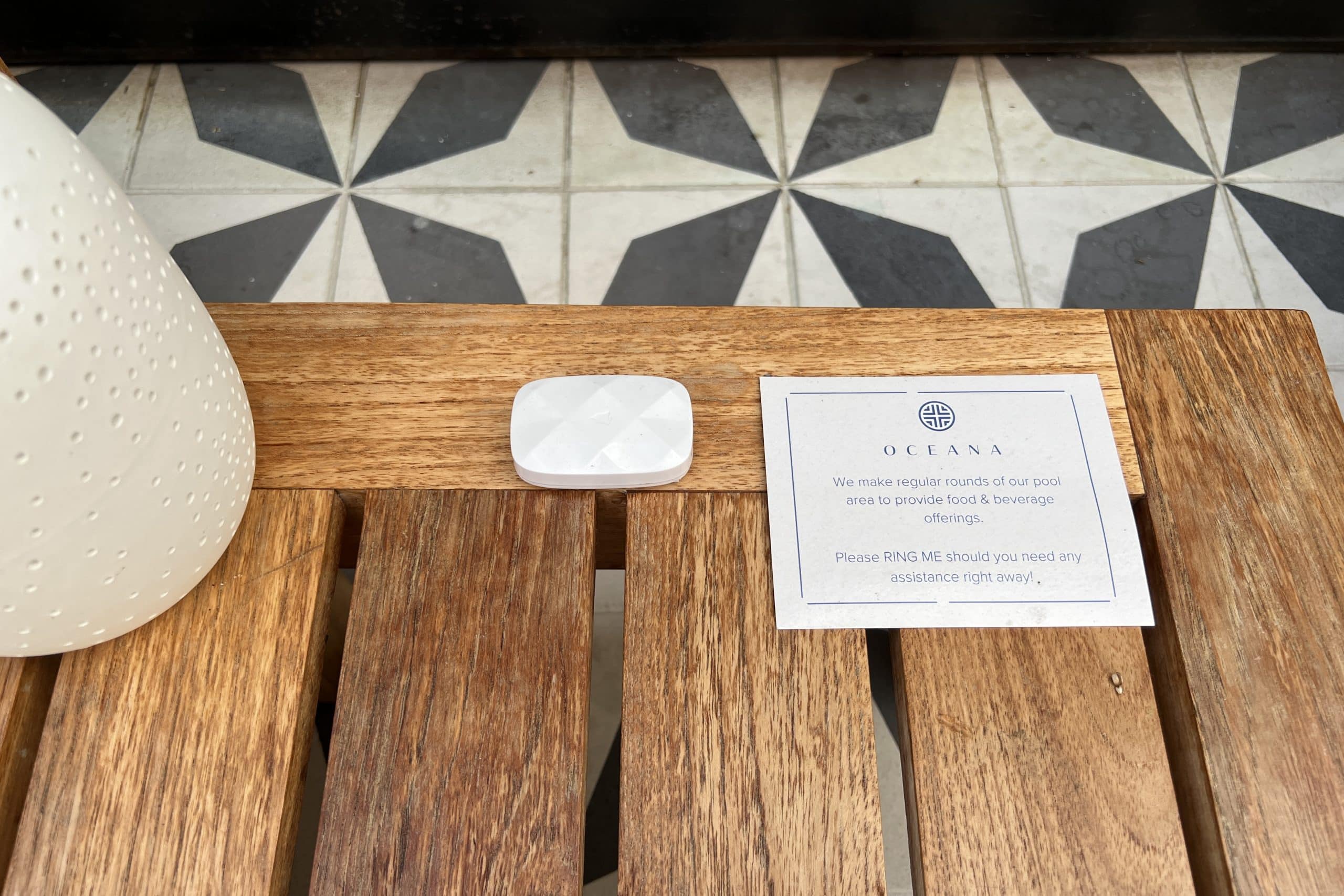 The side tables are equipped with call buttons in case you are in need of immediate service. Pool attendants make the rounds, but not too often.