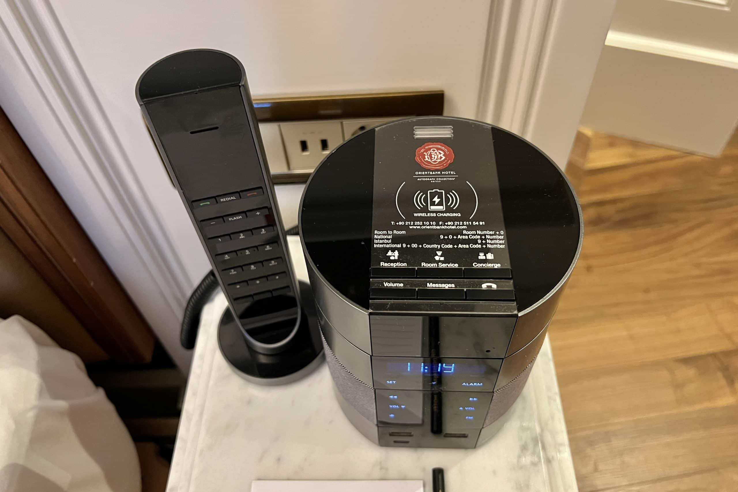 On one of the night tables was an alarm clock radio, which acted as a wireless charging station as well.