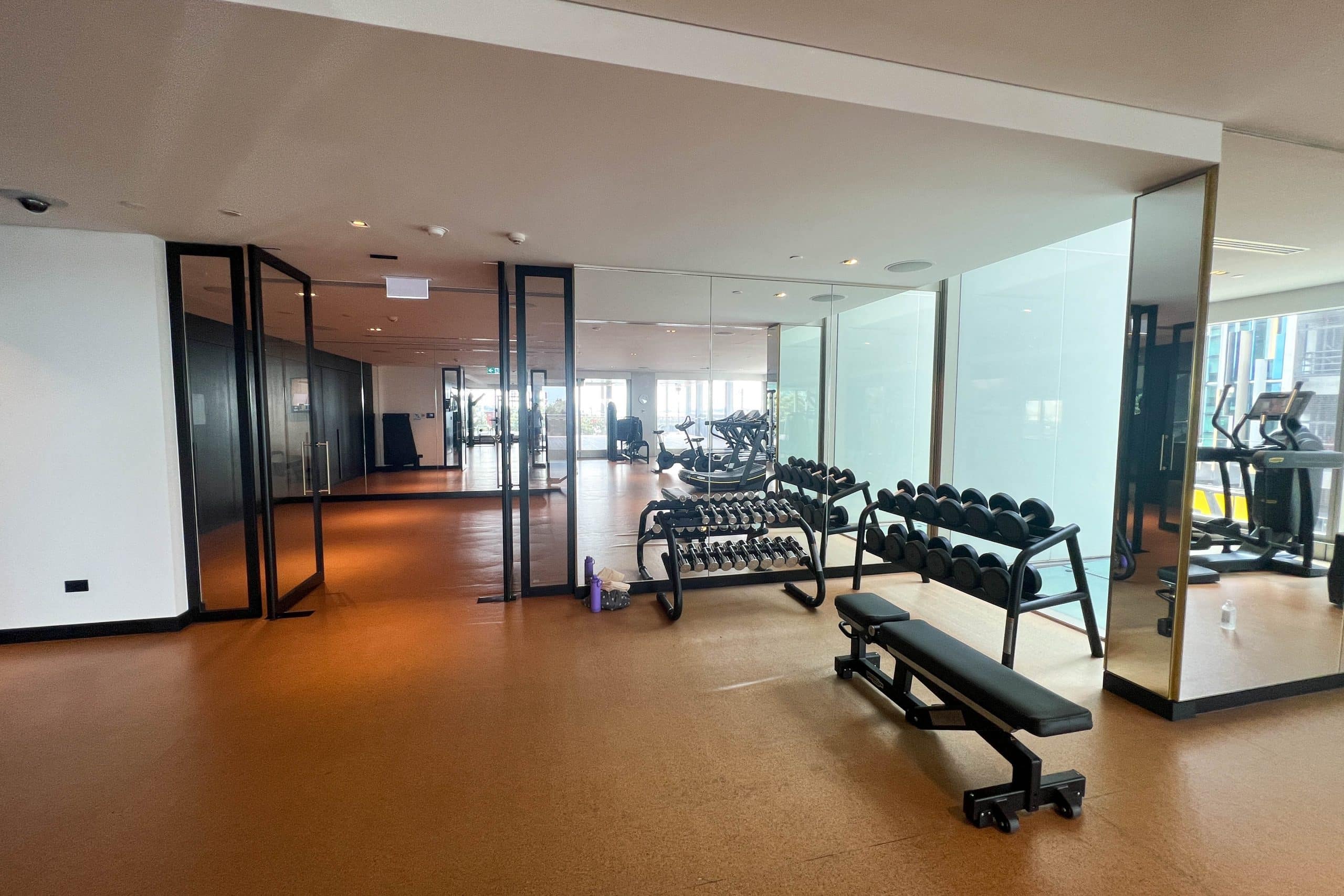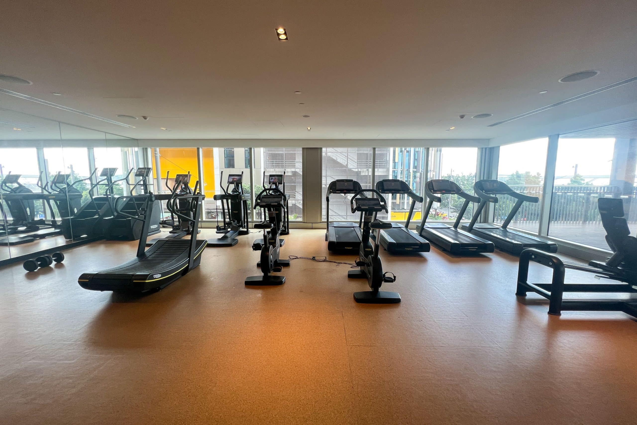 Inside, you’ll find a range of high-quality Technogym cardio equipment, as well as a modest selection of strength- and weight-training machines.