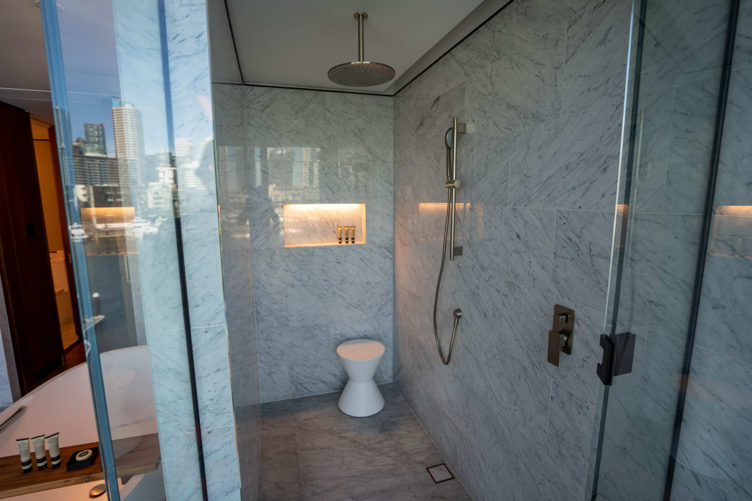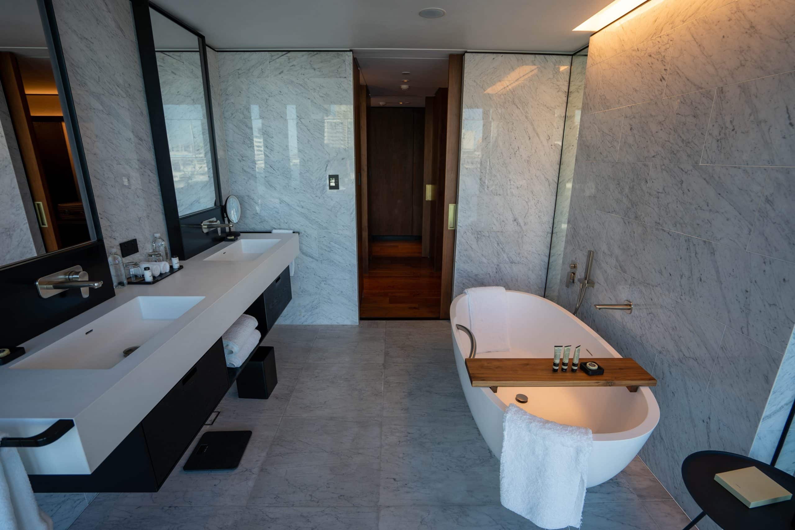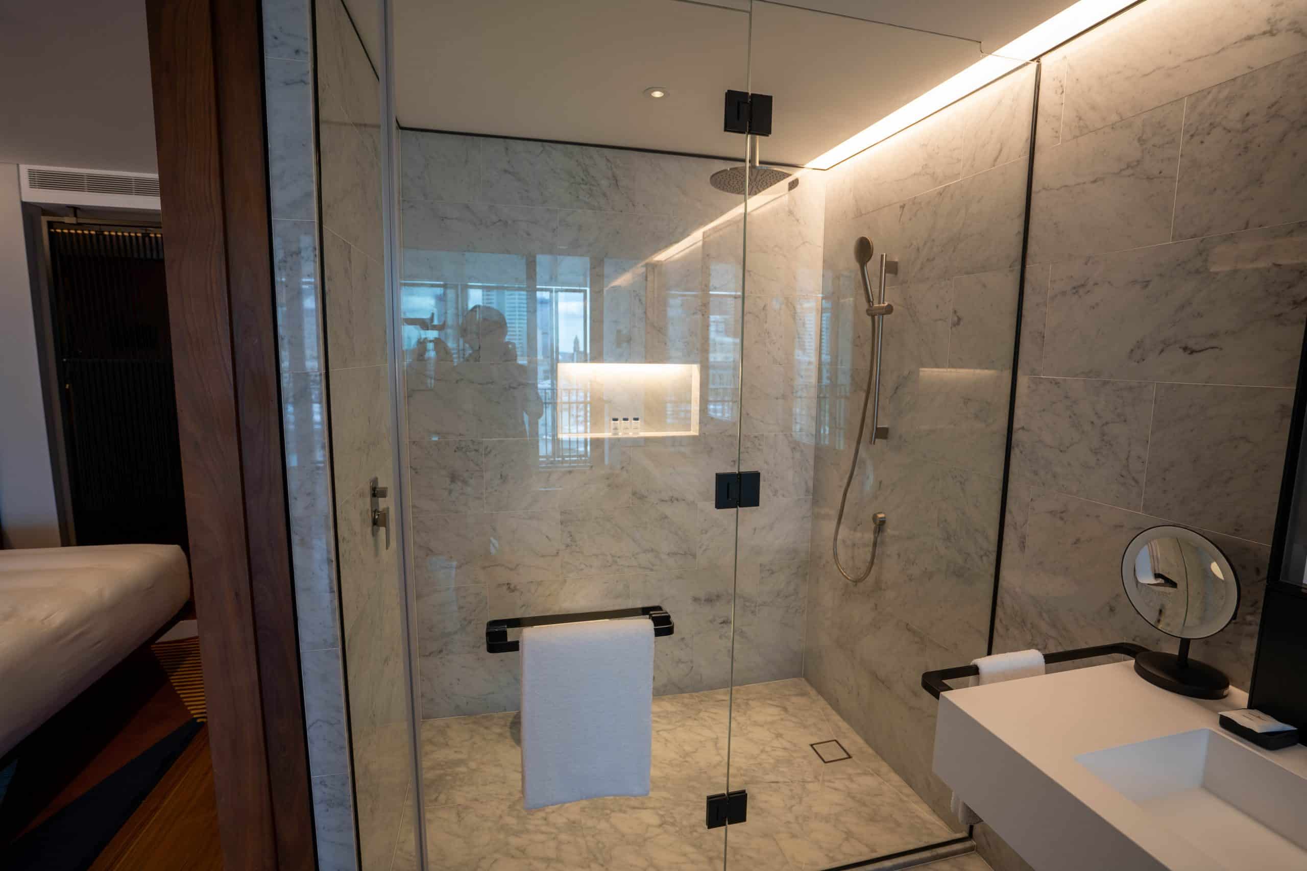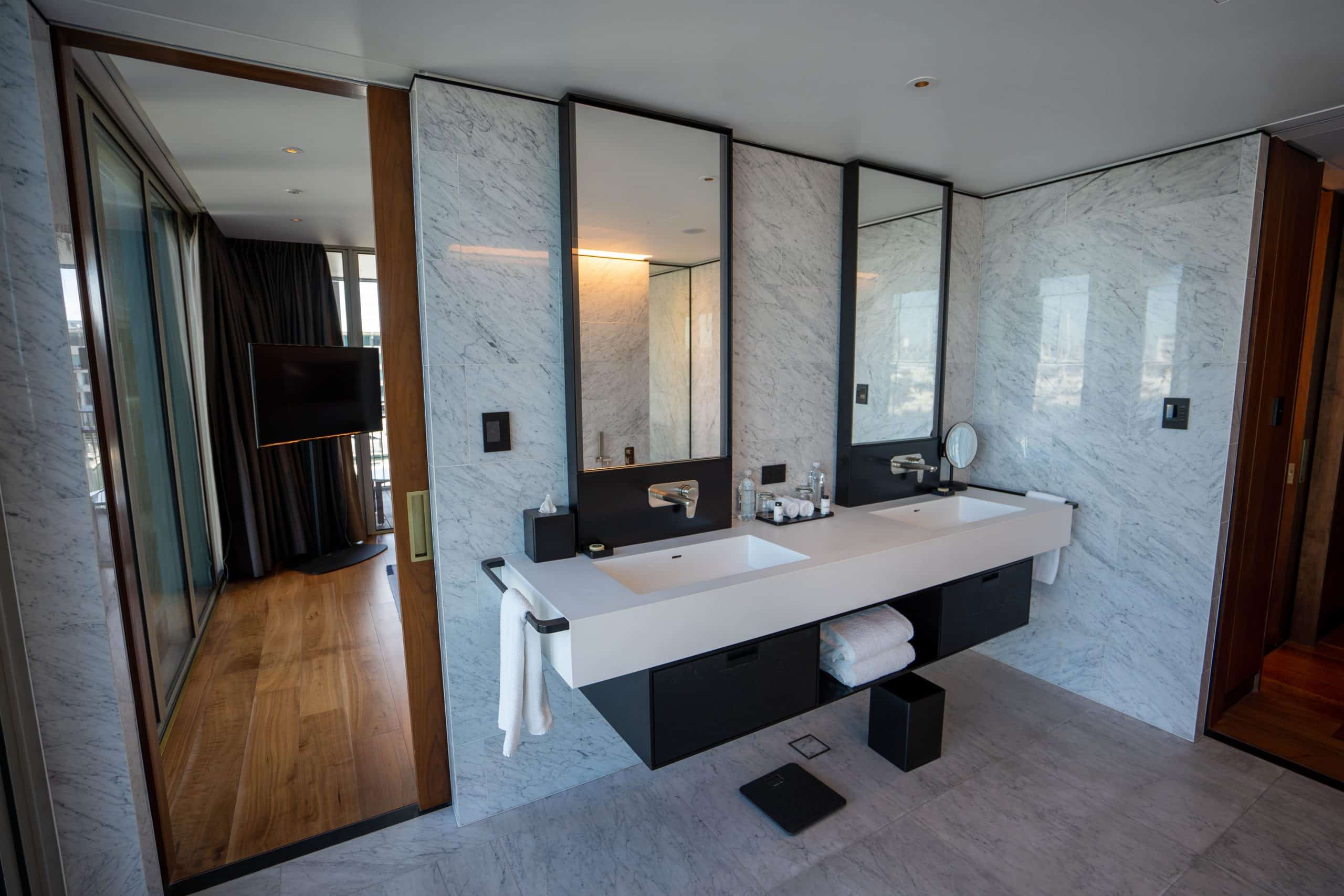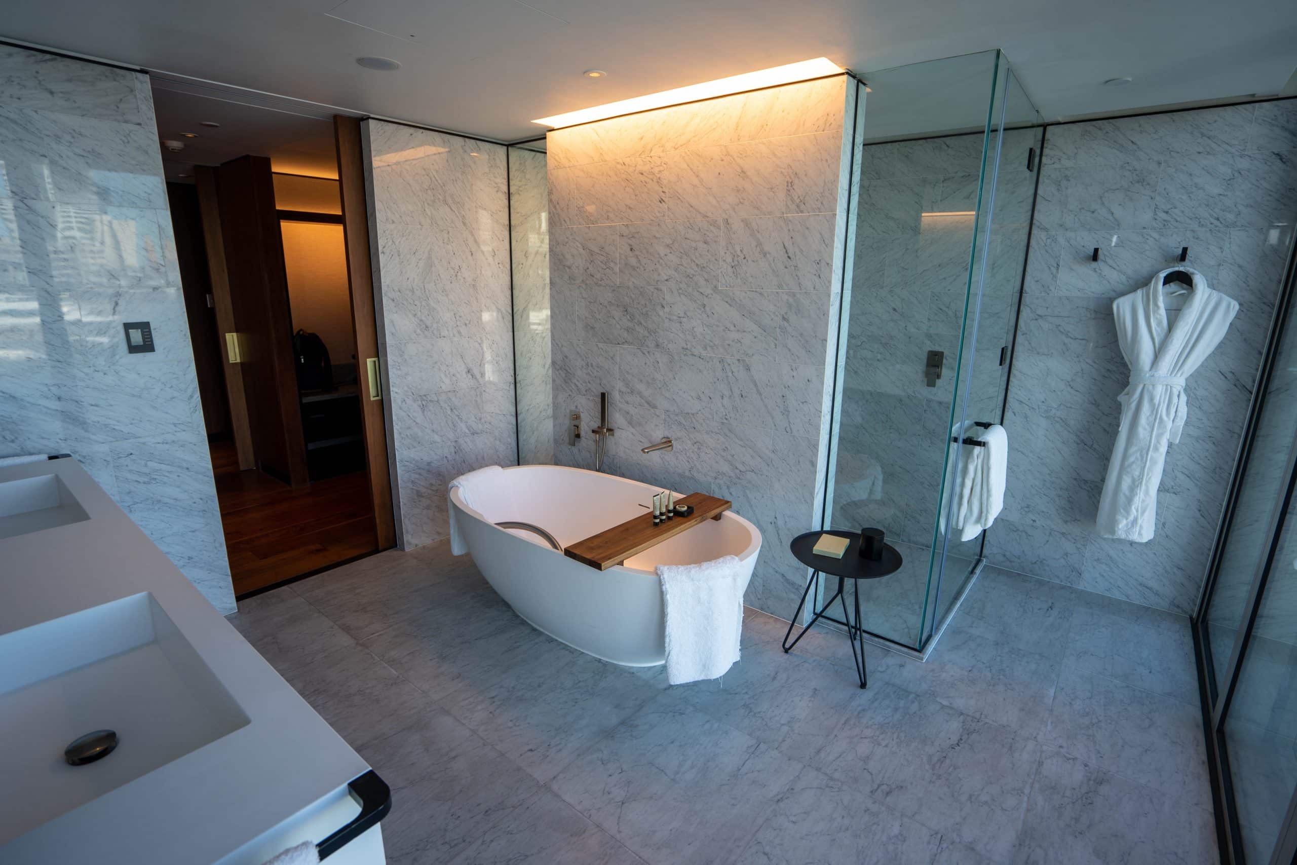 Overall, I couldn’t help but be captivated by the stunning marble bathroom, illuminated so elegantly by natural light flooding in via the floor-to-ceiling glass windows. The design reminded me of the Muir Hotel Halifax’s bathroom aesthetic, which is another property whose bathrooms had left me quite impressed.