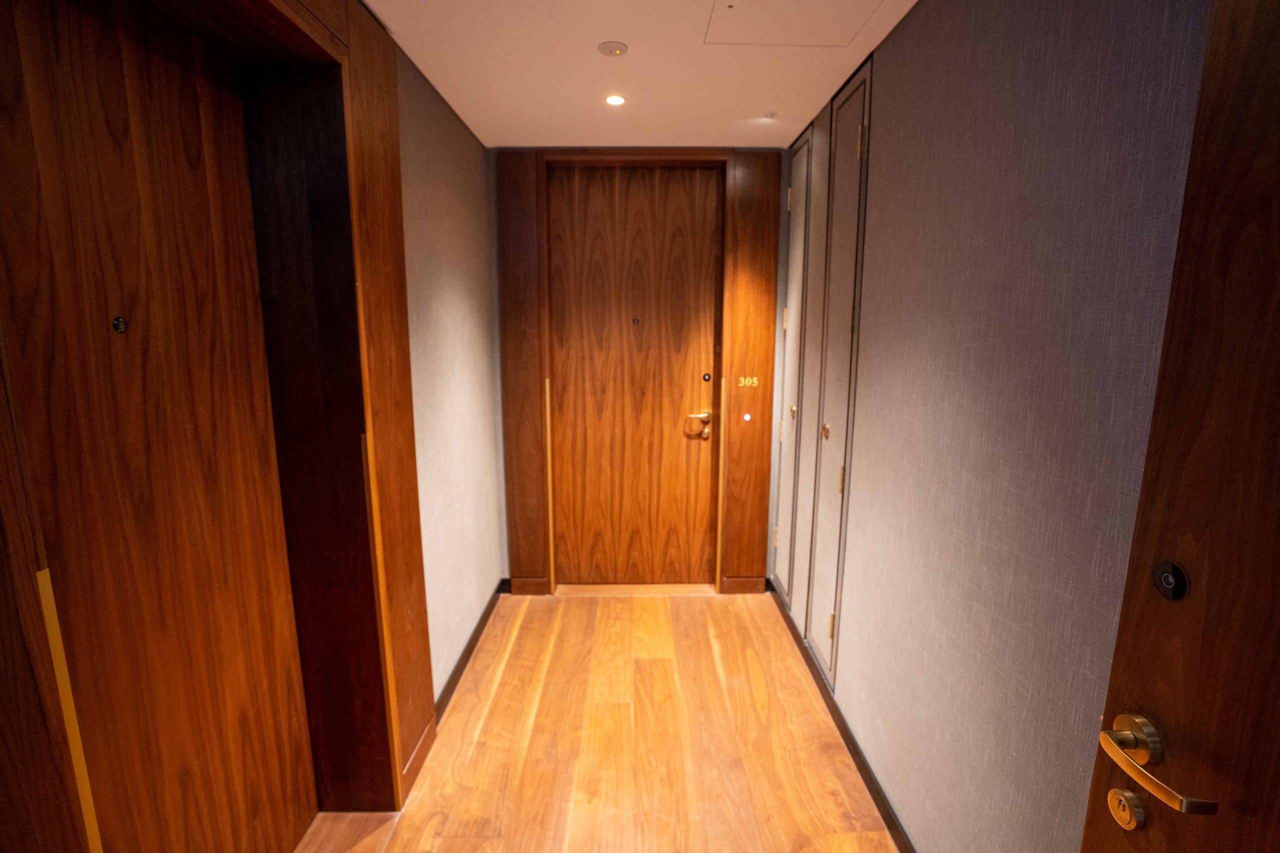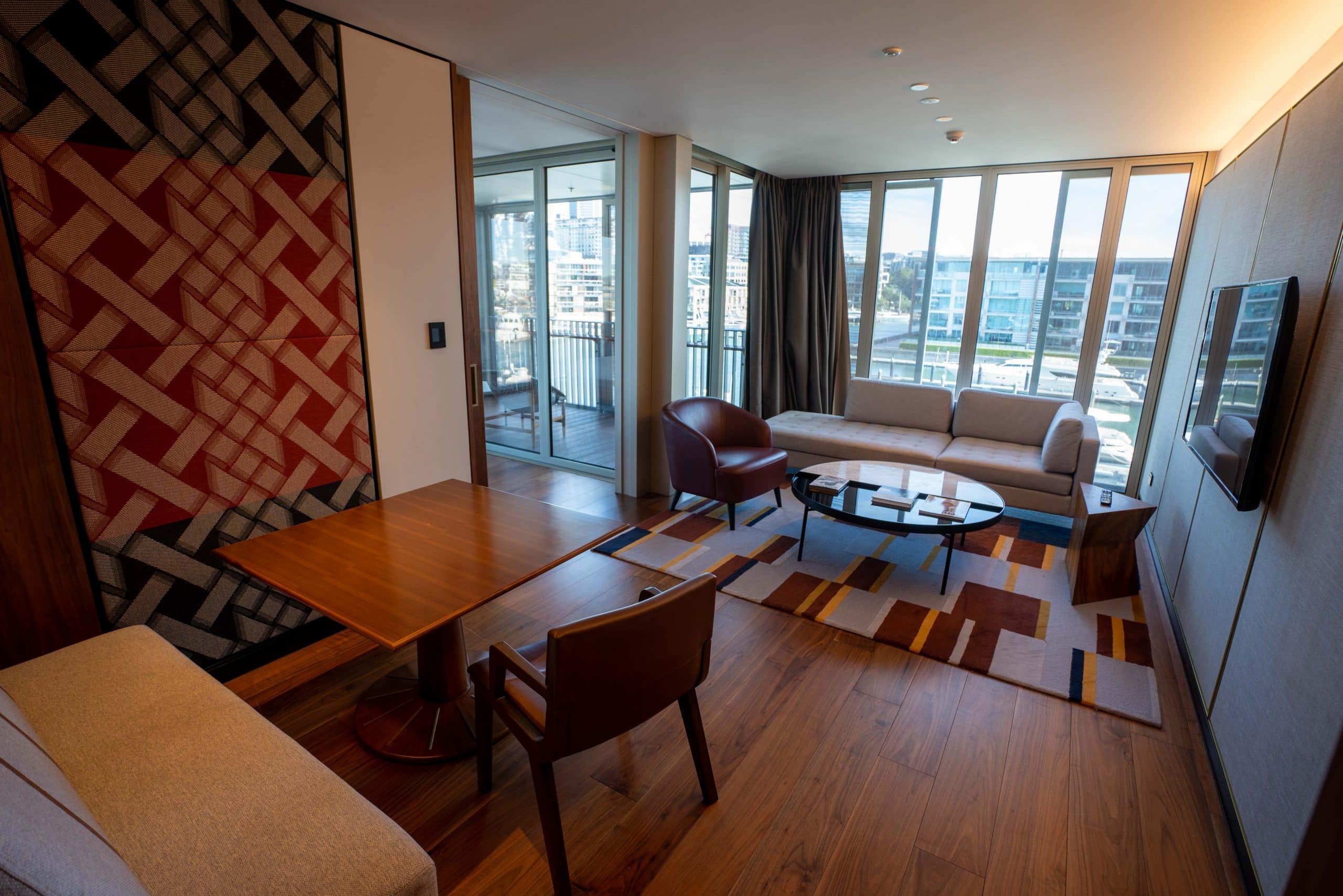 Upon entering, I was greeted with a brief foyer that lead into a spacious living area. While the suite maintained an open plan concept, each section could be closed off for privacy and versatile usage through sturdy wooden slider doors.