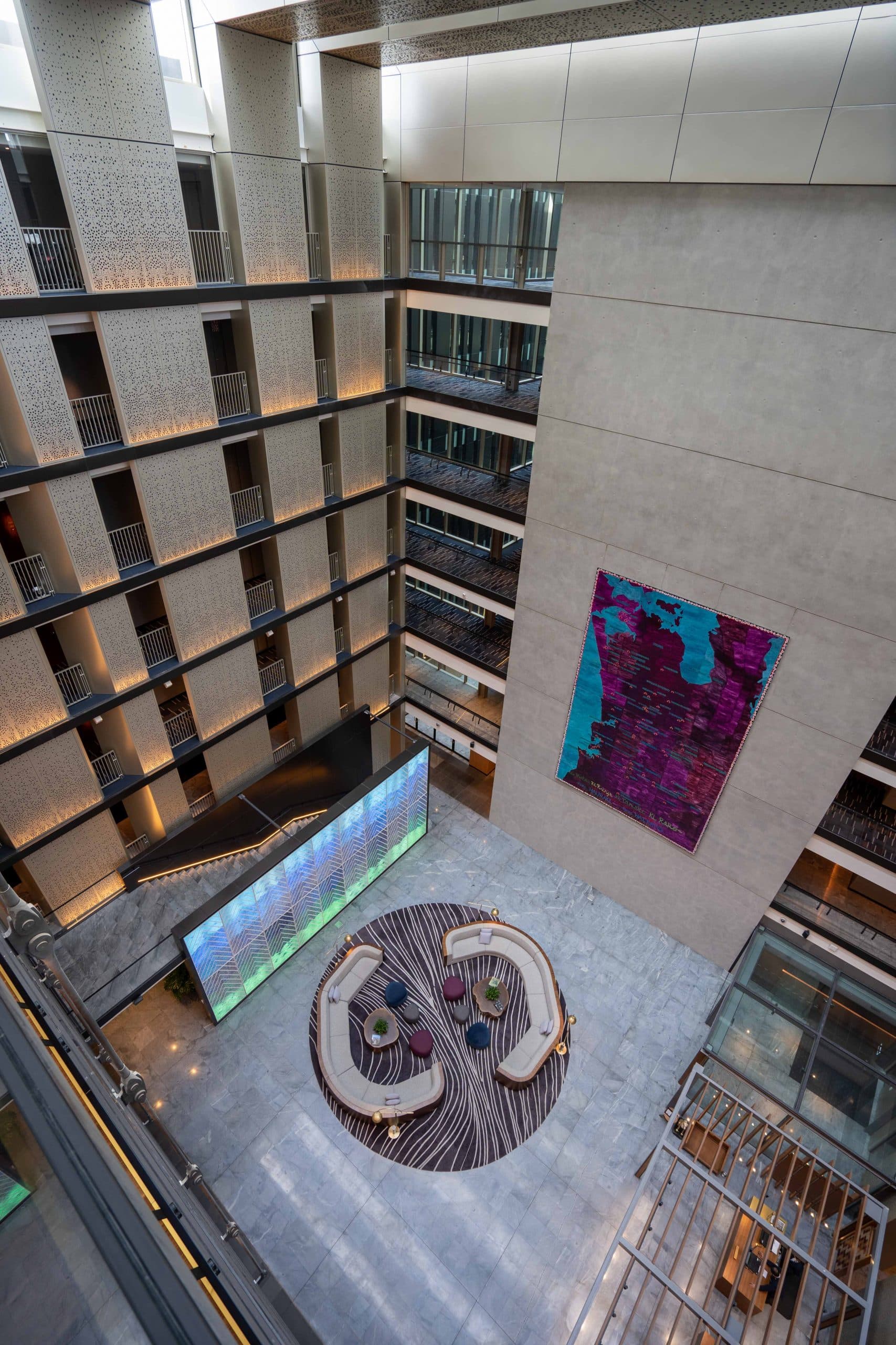 As a striking contrast to the low entry porte-cochère, inside, you’ll be greeted by a breathtaking seven-storey central atrium, encircled by the hotel’s guest rooms.