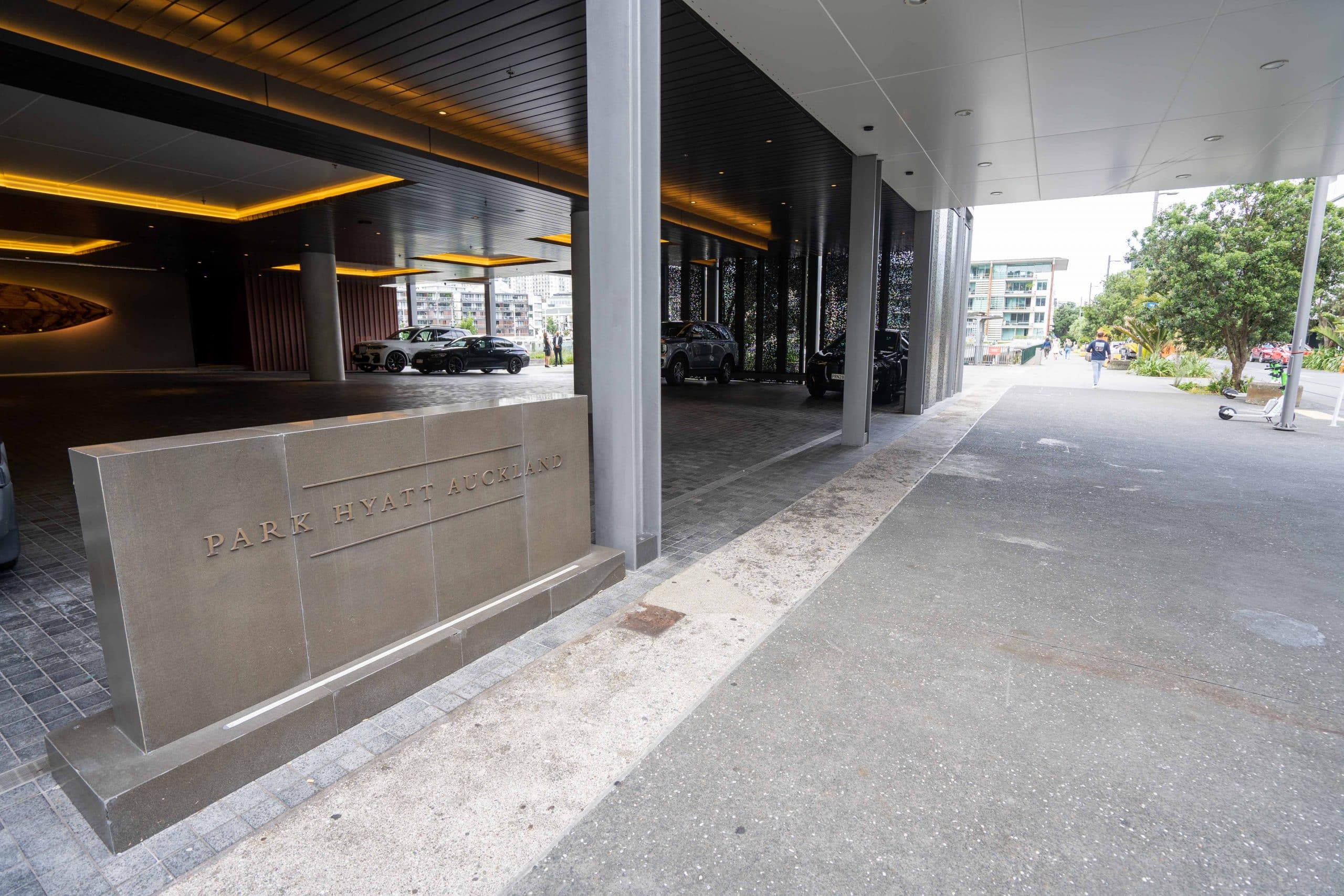 The entrance to the Park Hyatt Auckland sits directly off Halsey Street in Auckland Central, where a porte-cochère welcomes you inside.