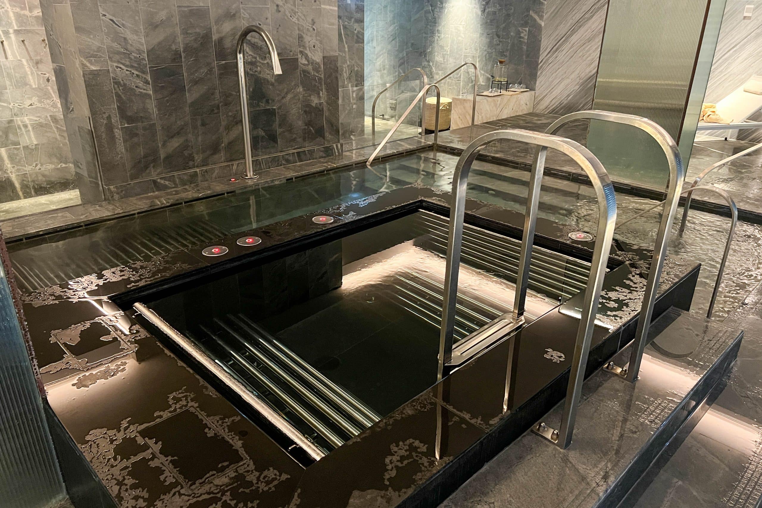 The hydrotherapy area includes an aroma steam room, a sauna, and a full-feature jacuzzi, as well as a cold plunge pool that actually wasn’t too cold.