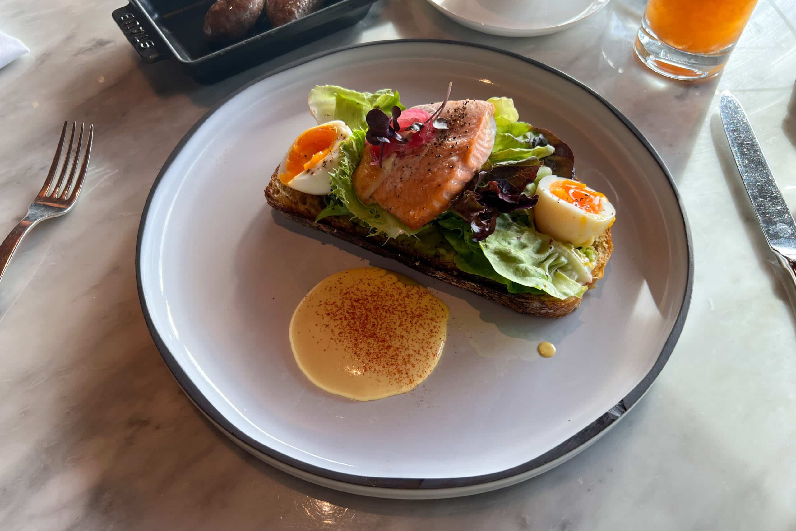 For my breakfast, I decided to try the Hearth Roasted Salmon, which was indeed quite tasty. The smoky flavour of the salmon complemented the creamy avocado perfectly, while the tangy sourdough added a delightful crunch to the dish.