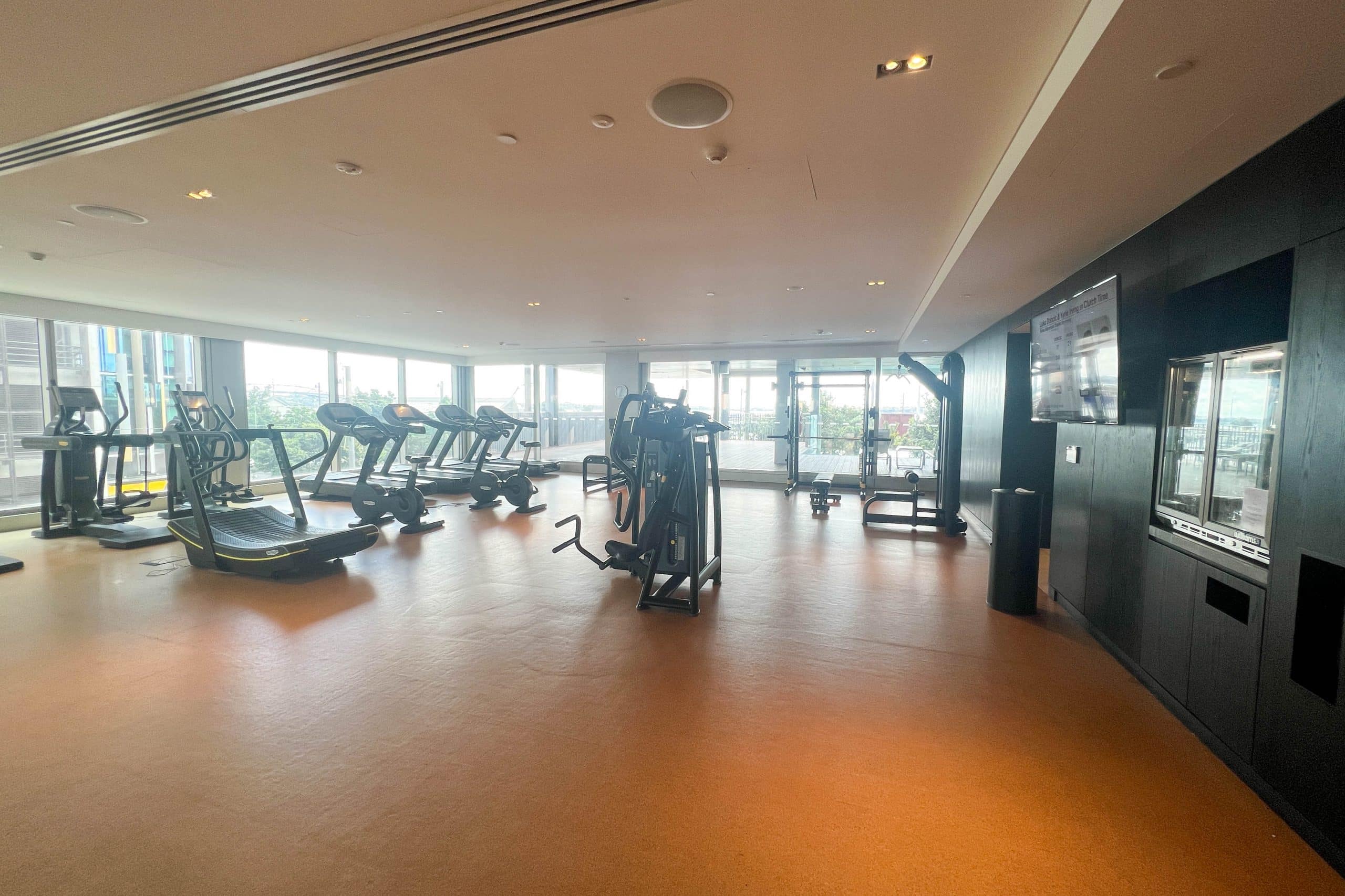 The fitness centre is a spacious and well-lit facility, and is open 24 hours every day. Its large windows allow plenty of natural light to fill the space, creating an inviting space for workouts.