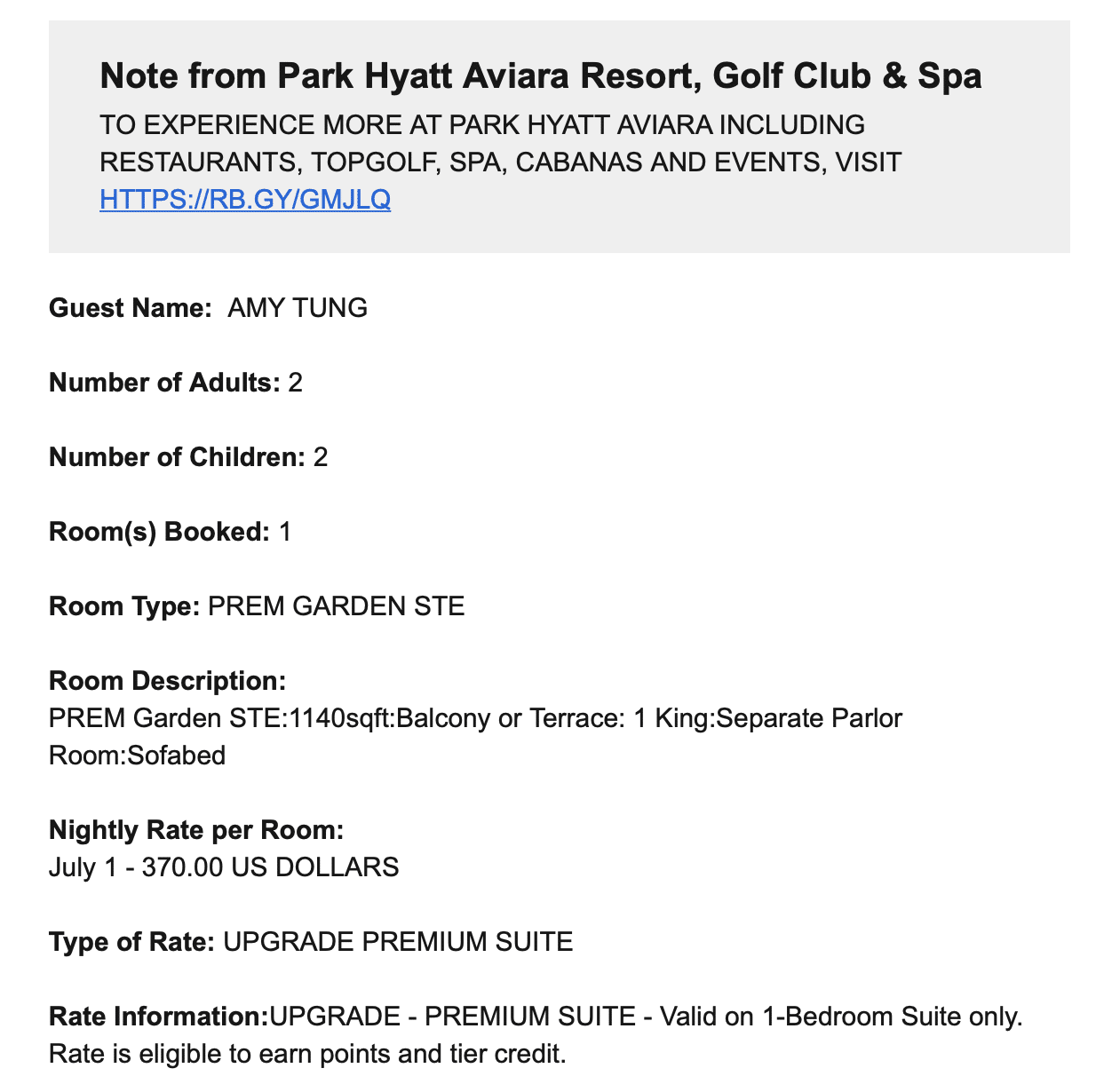 - Room upgrade confirmed within 24 hours of booking