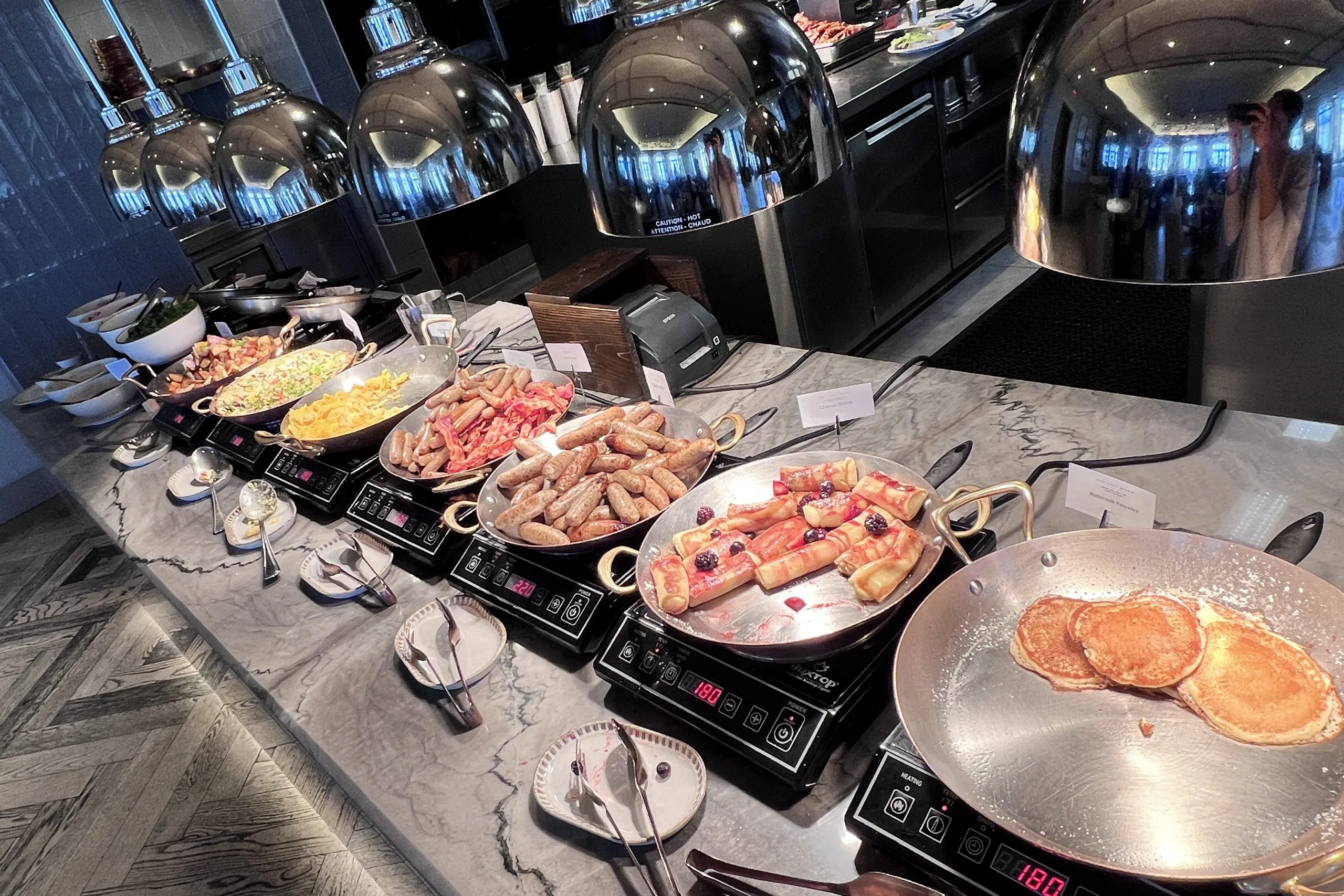 The breakfast buffet offerings weren’t the most extensive I’ve seen, but it was a decent spread and of good quality. The selection varied daily, but there was consistently a variety of breads, pastries, and fruits; a selection of warm dishes that included pancakes, potatoes, bacon, sausage, frittata; and an omelette station.