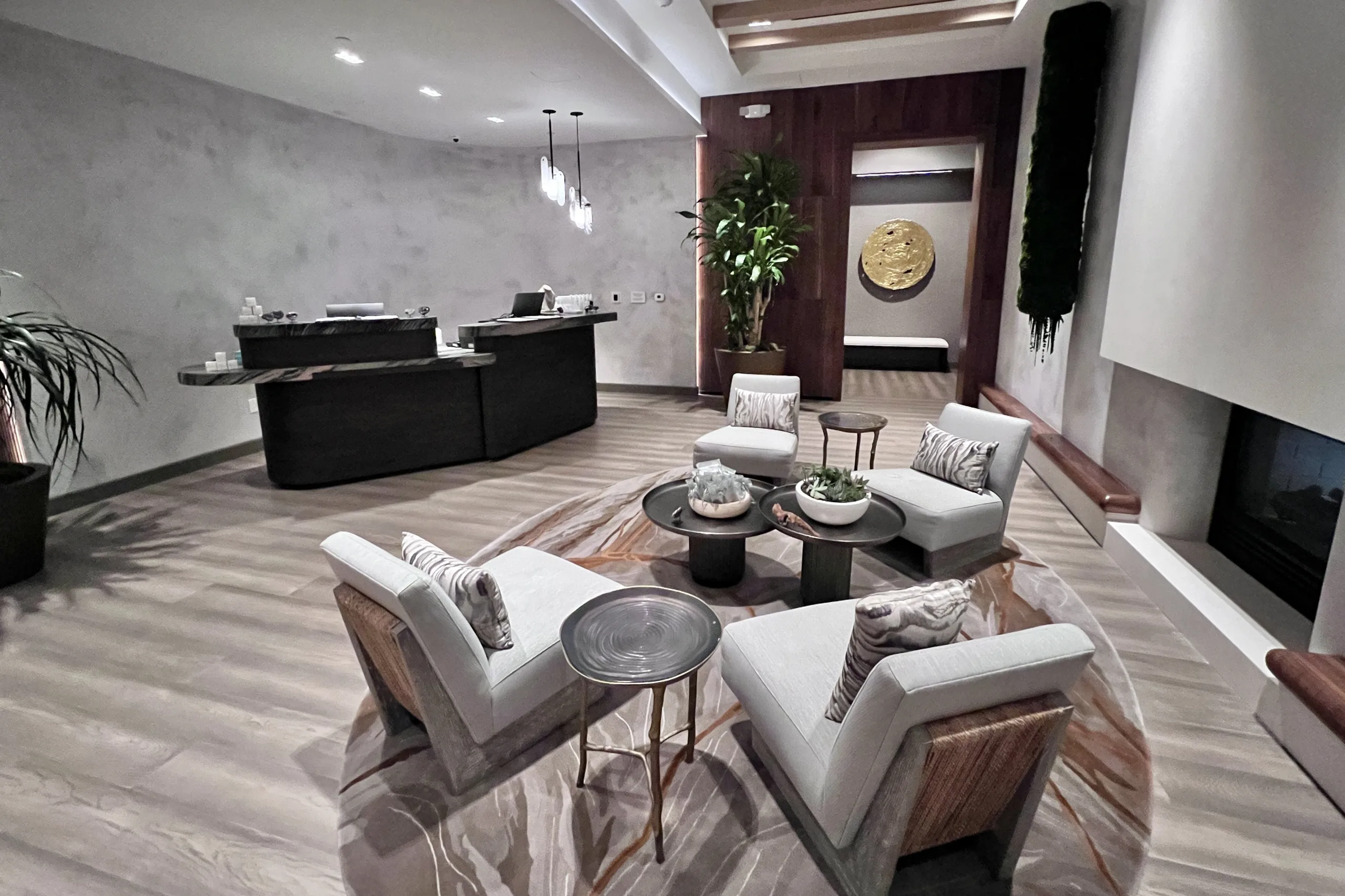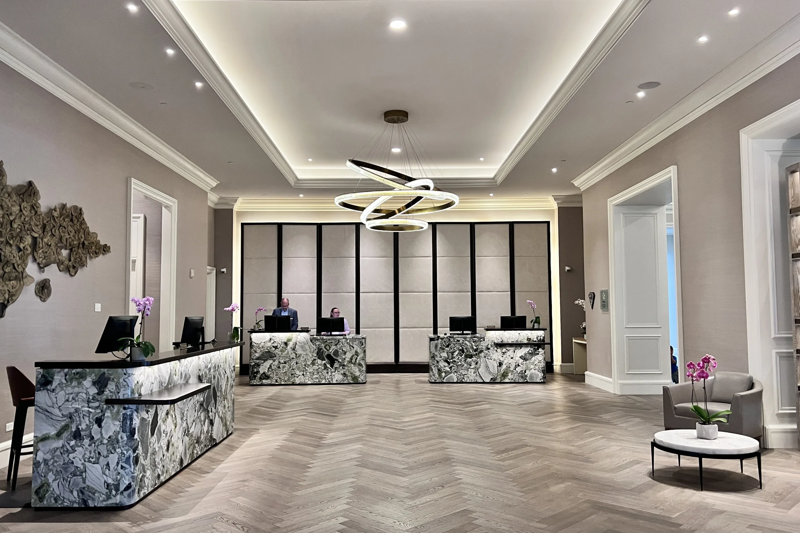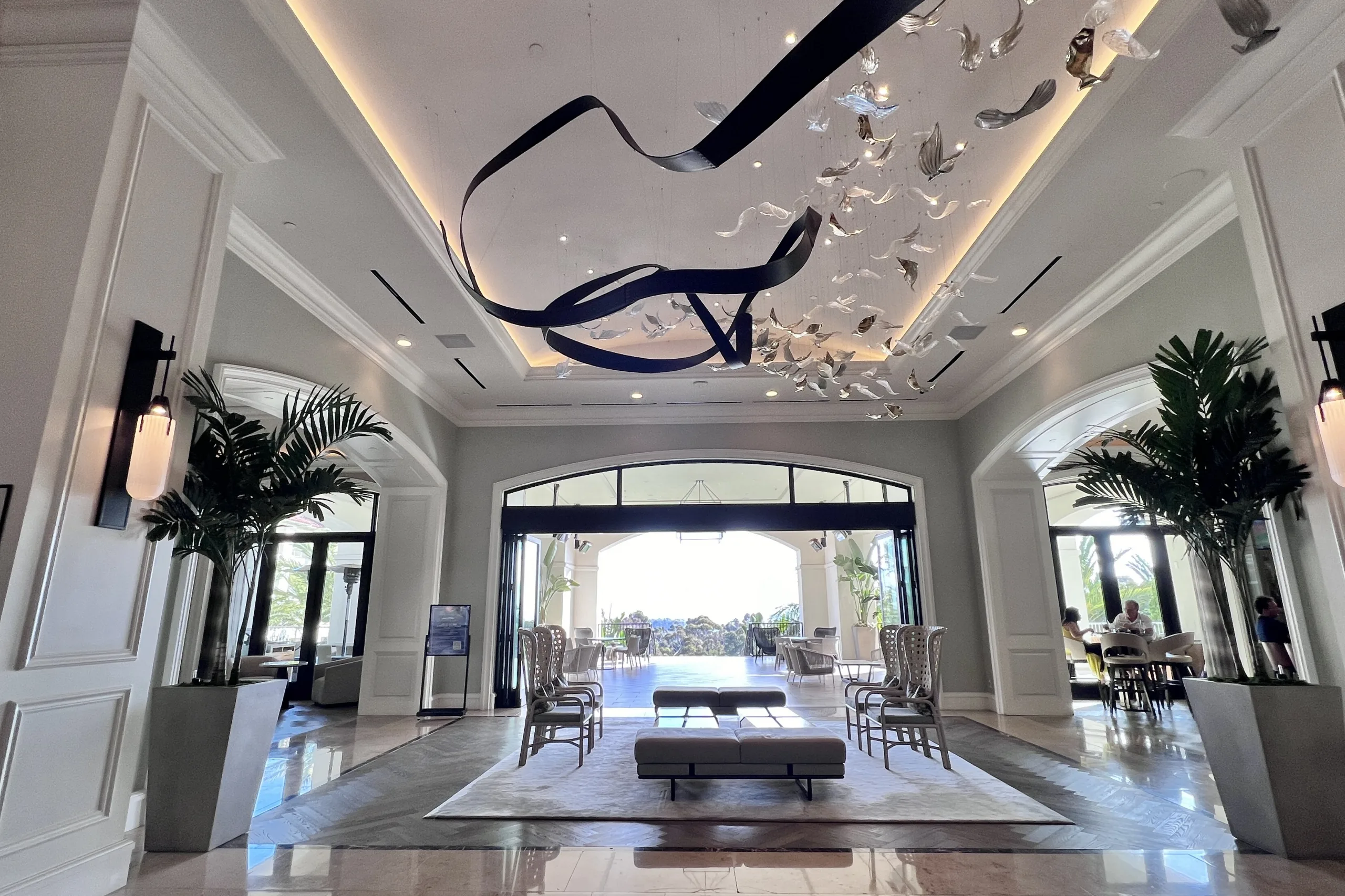 Together, all the lobby elements convey a luxurious yet relaxed coastal vibe.