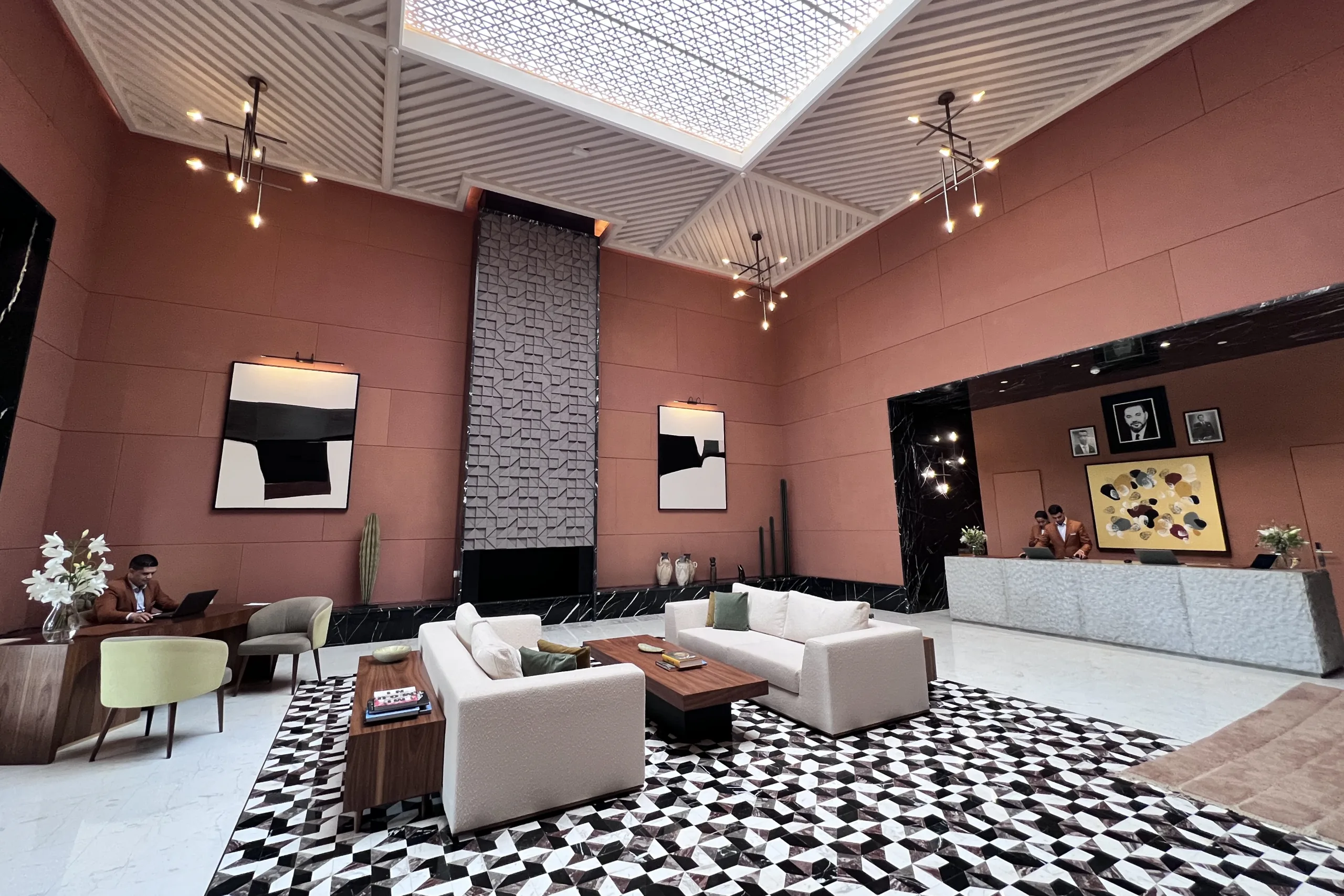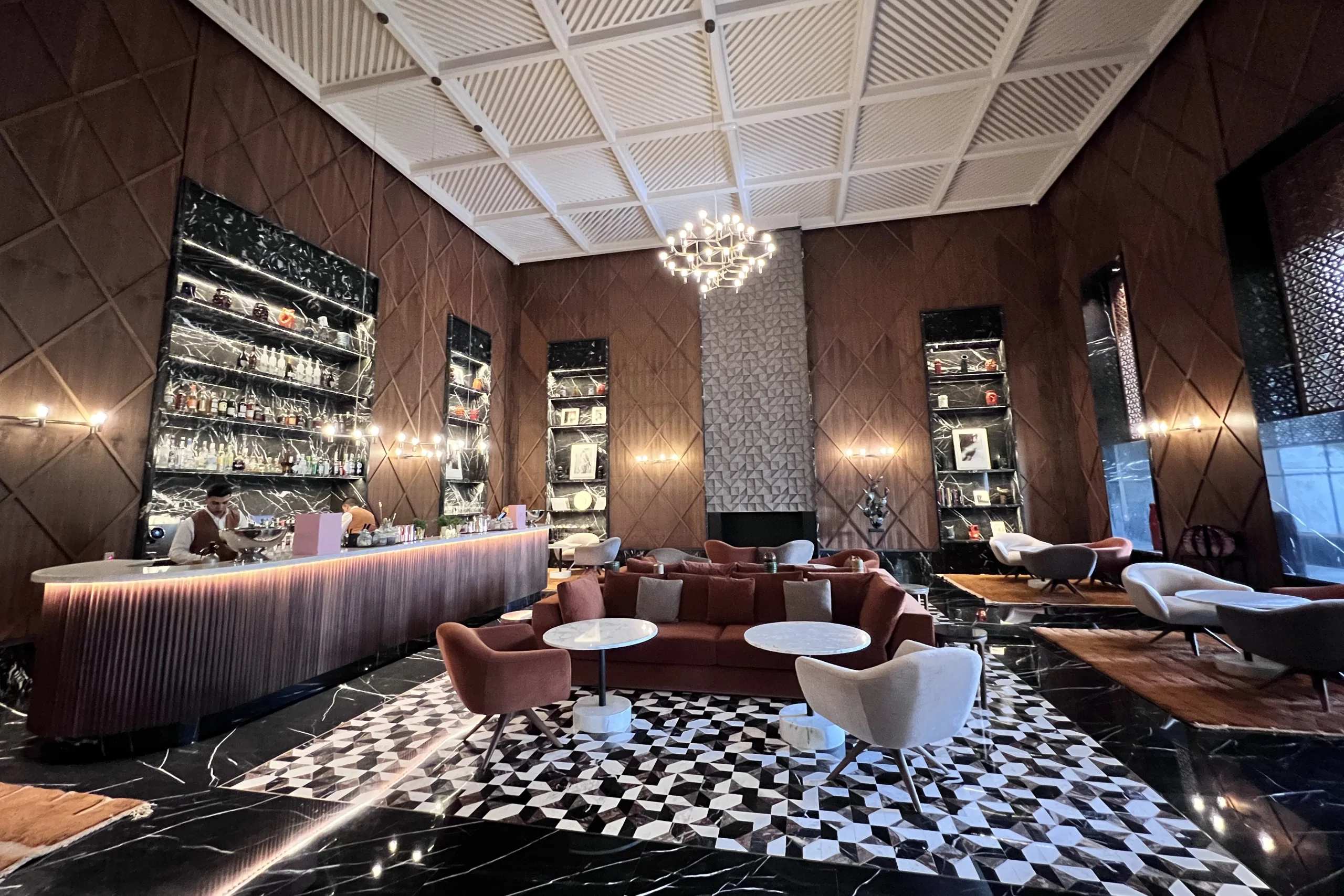 Walking through the lobby felt like entering a grand palace. The design was modern, yet infused with a Moroccan color palette of rich browns and deep reds set against alabaster-colored walls. Soaring ceilings and marble mosaic floors added to the sense of grandeur and elegance.
