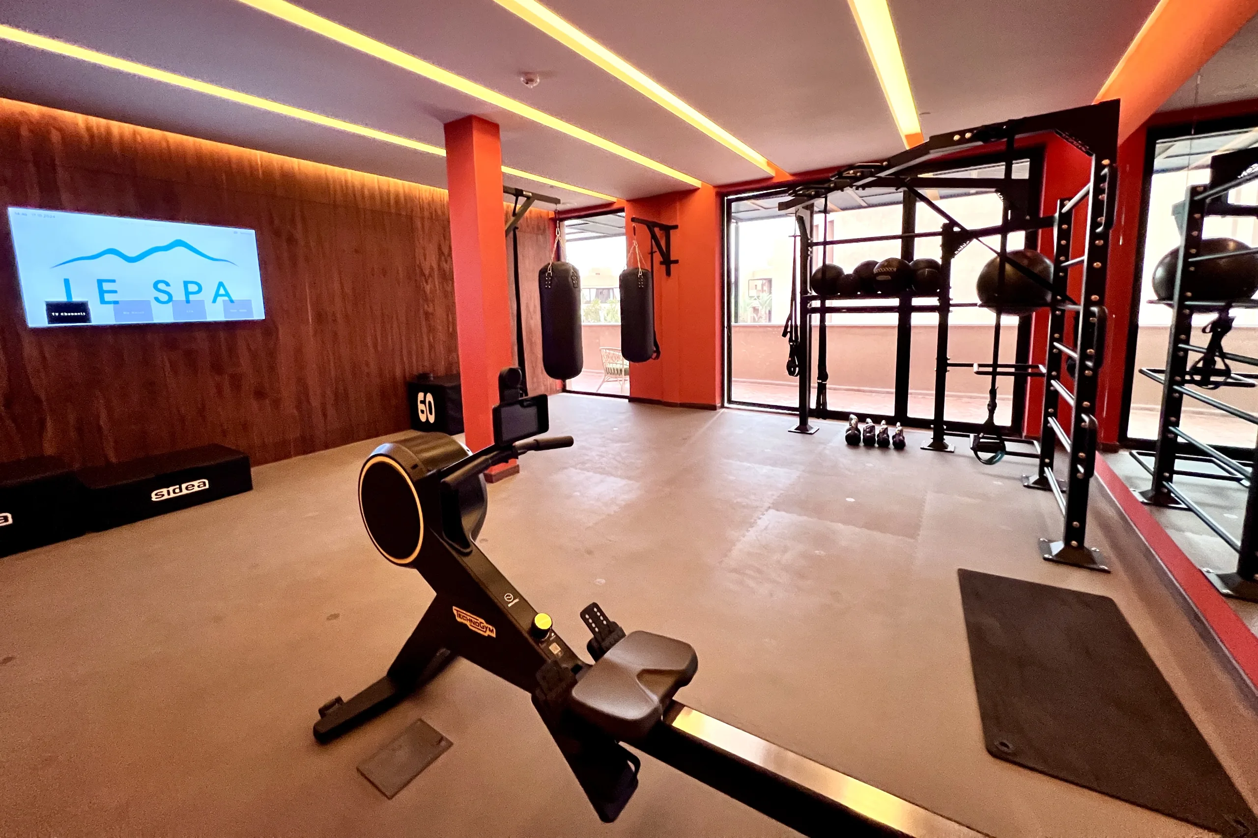 The gym is equipped with weight and cardio equipment designed by Technogym, and is open 24/7 for personal use. Studio rooms are also available for yoga, pilates, and other activities. Various wellness and fitness classes are offered throughout the week for a fee (most one-hour sessions cost 500 MAD).