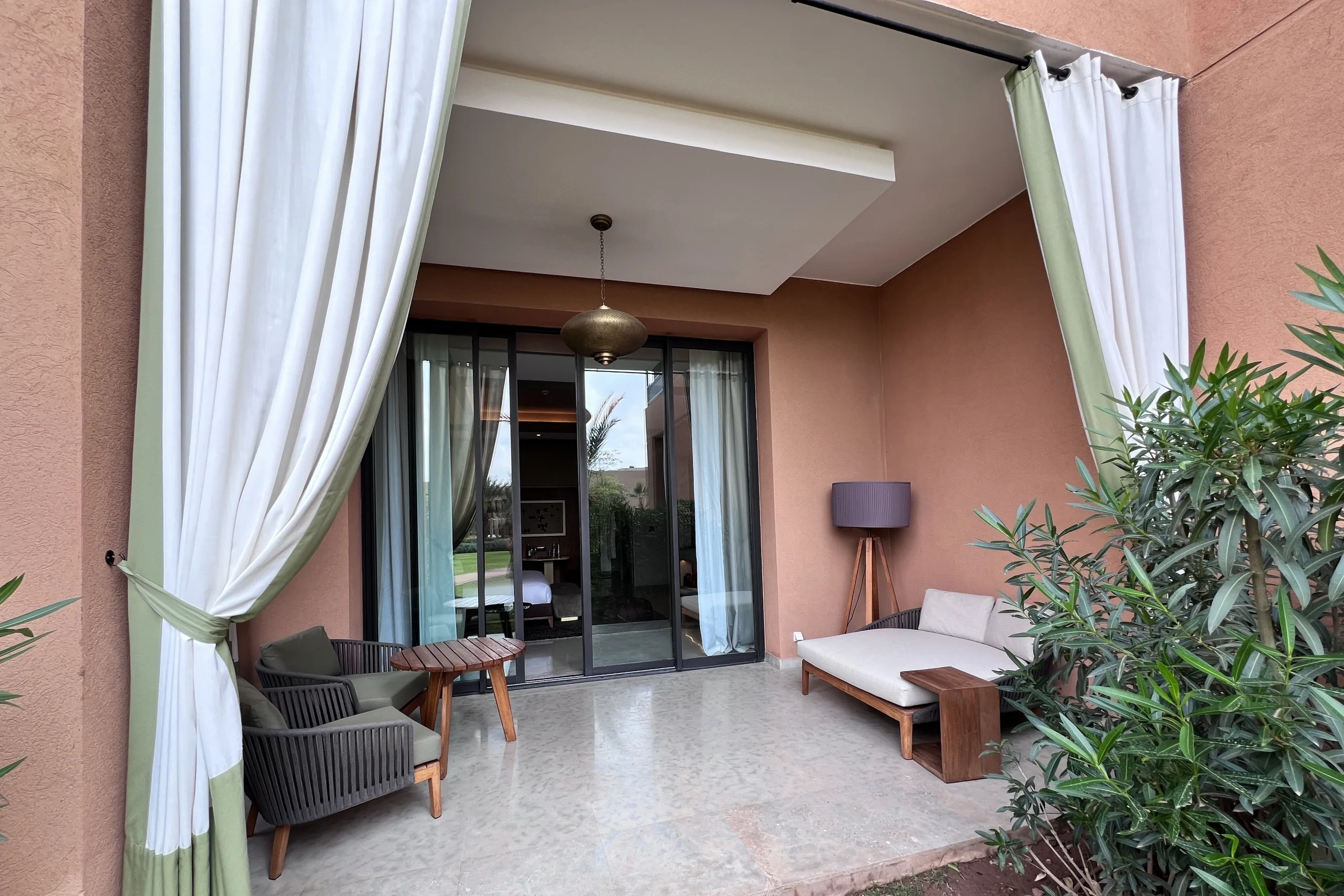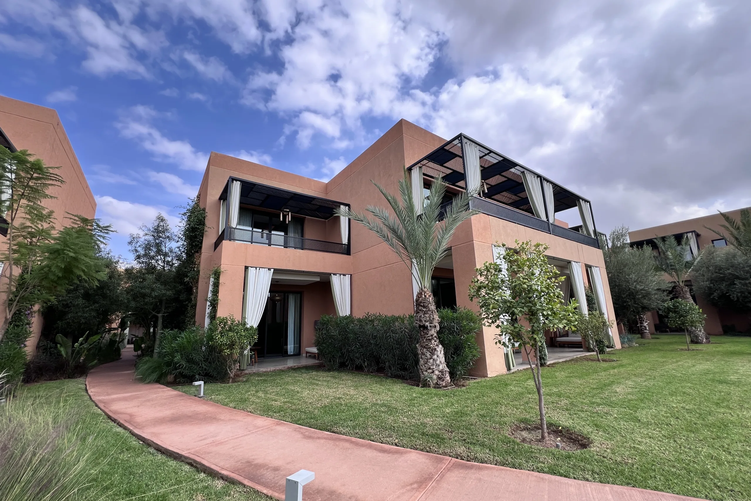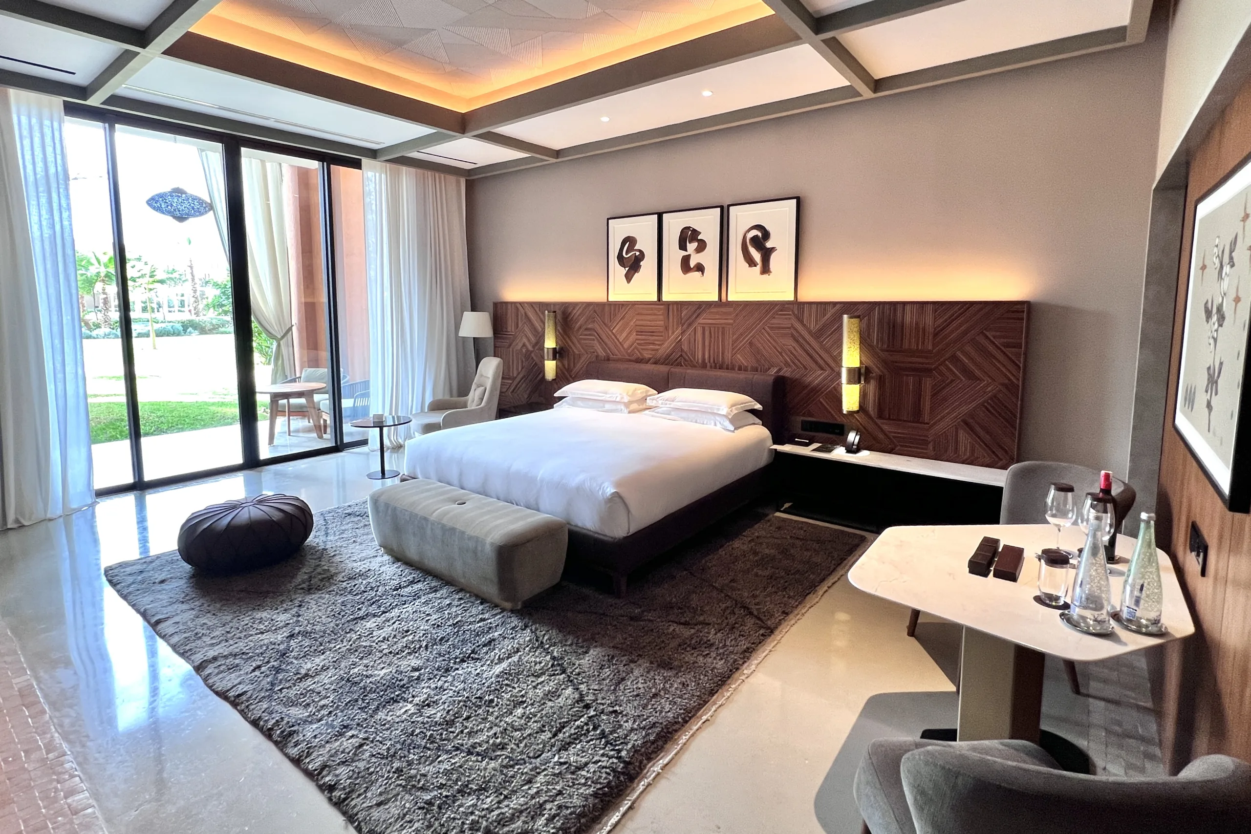 Coming from the medina, the drive was pleasant. A security guard greeted us at the gated entrance. Upon arrival, the Park Hyatt Marrakech’s imposing marble facade set a magnificent first impression that hinted at the luxury to come.