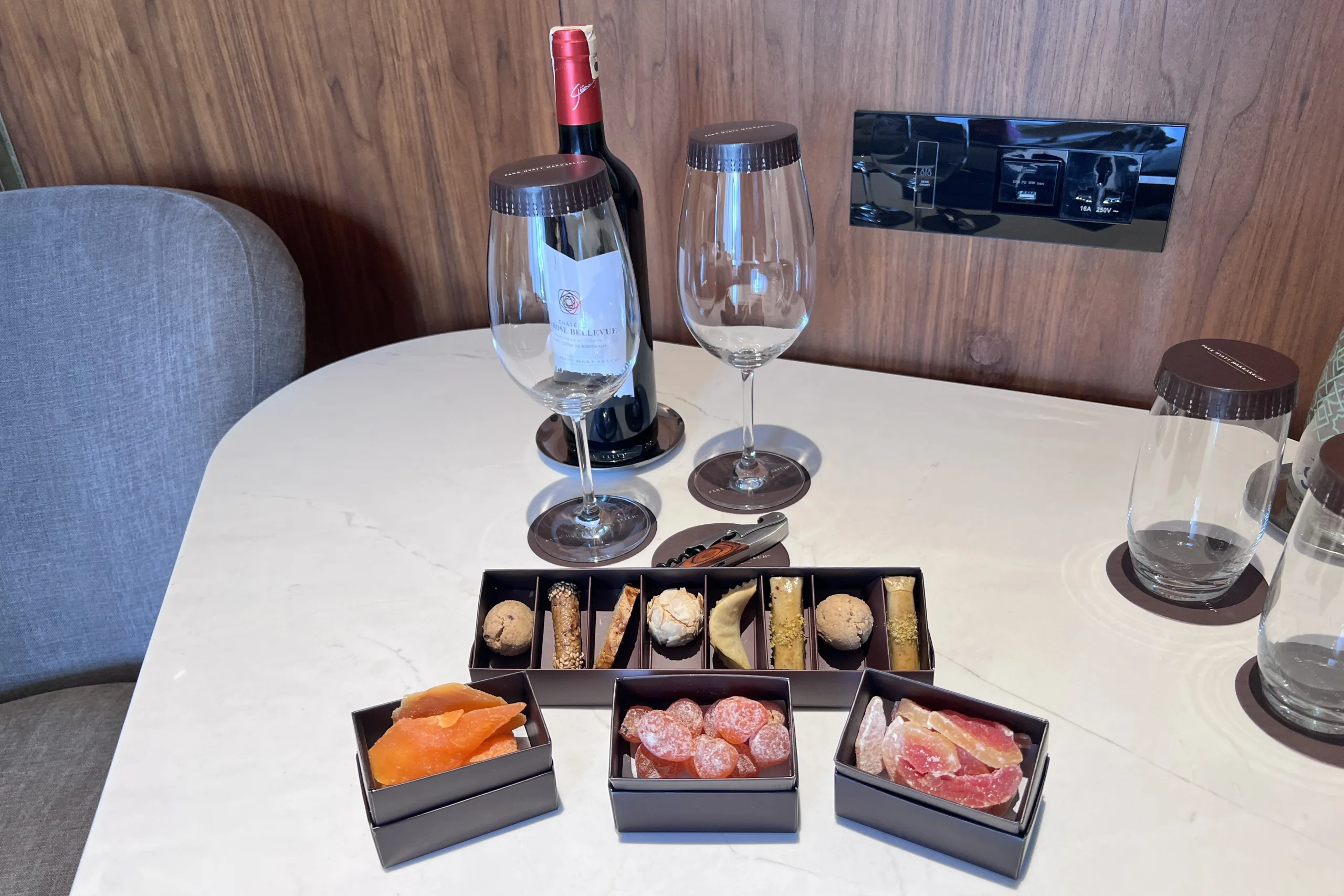 - Welcome gift: We were provided a generous welcome gift of wine, cookies, and sweets in our suite.