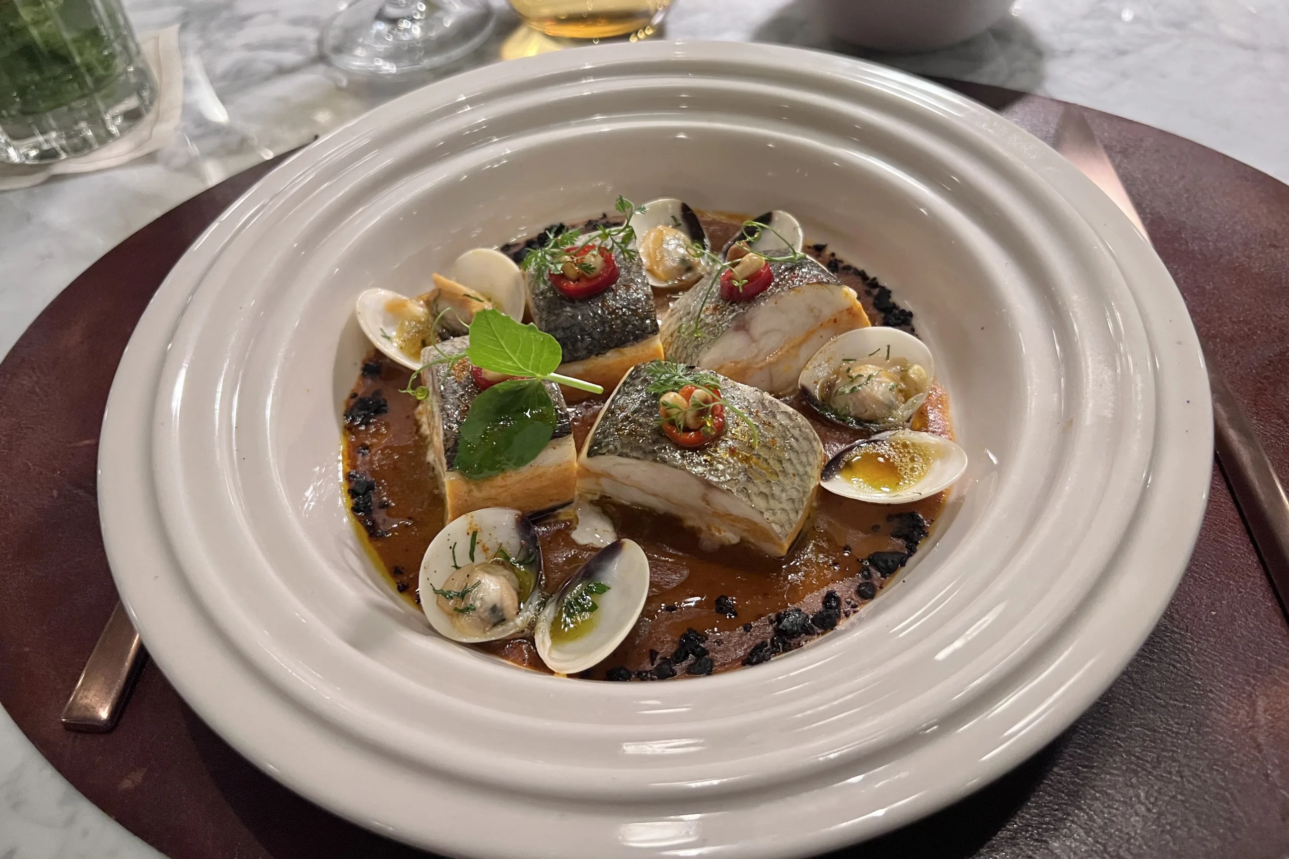 We found ourselves drawn back for dinner, and it was worth the return visit. A live musician sets the perfect mood each evening as you dine. The Samak har-style sea bass fillet with clams was a standout, though their meat dishes also hit the mark.