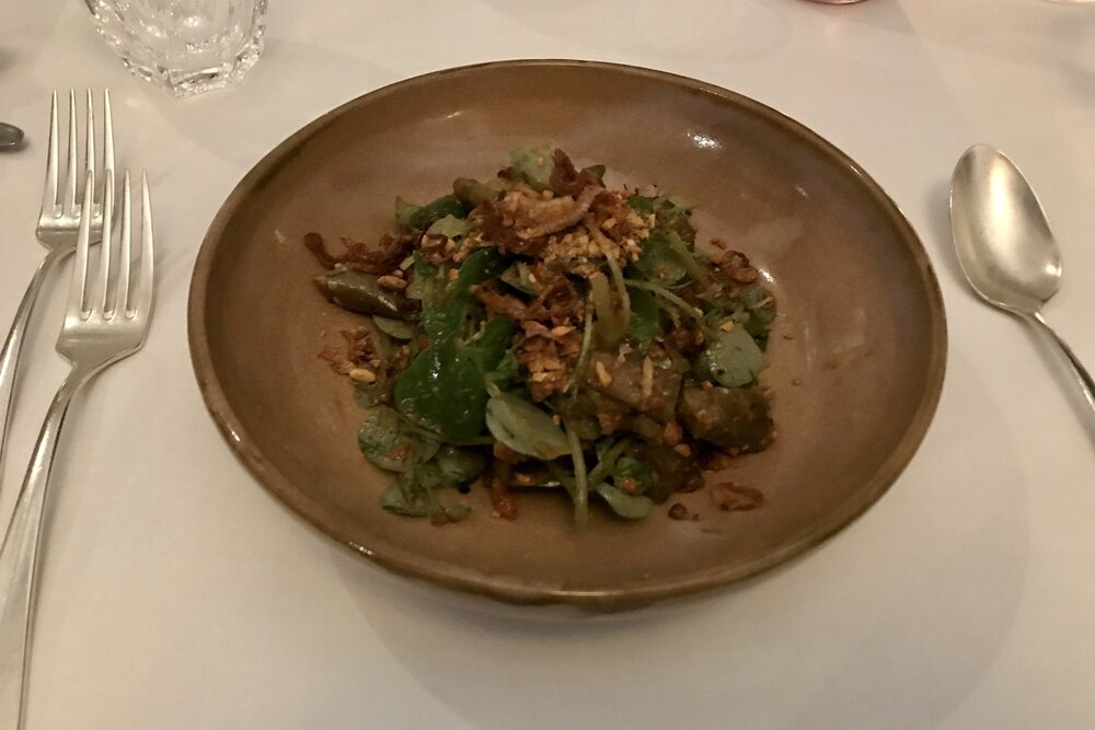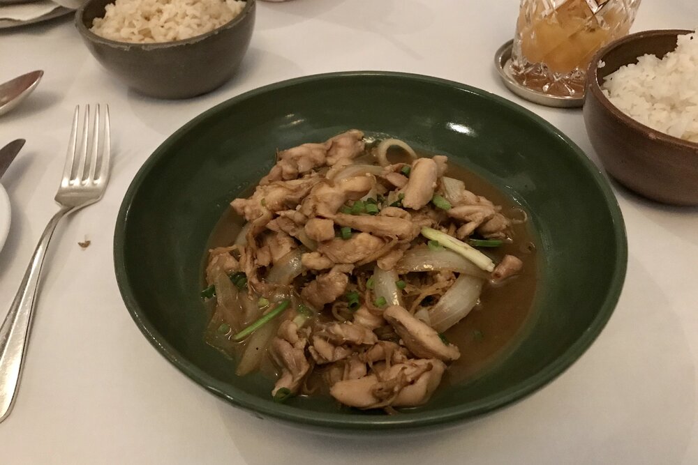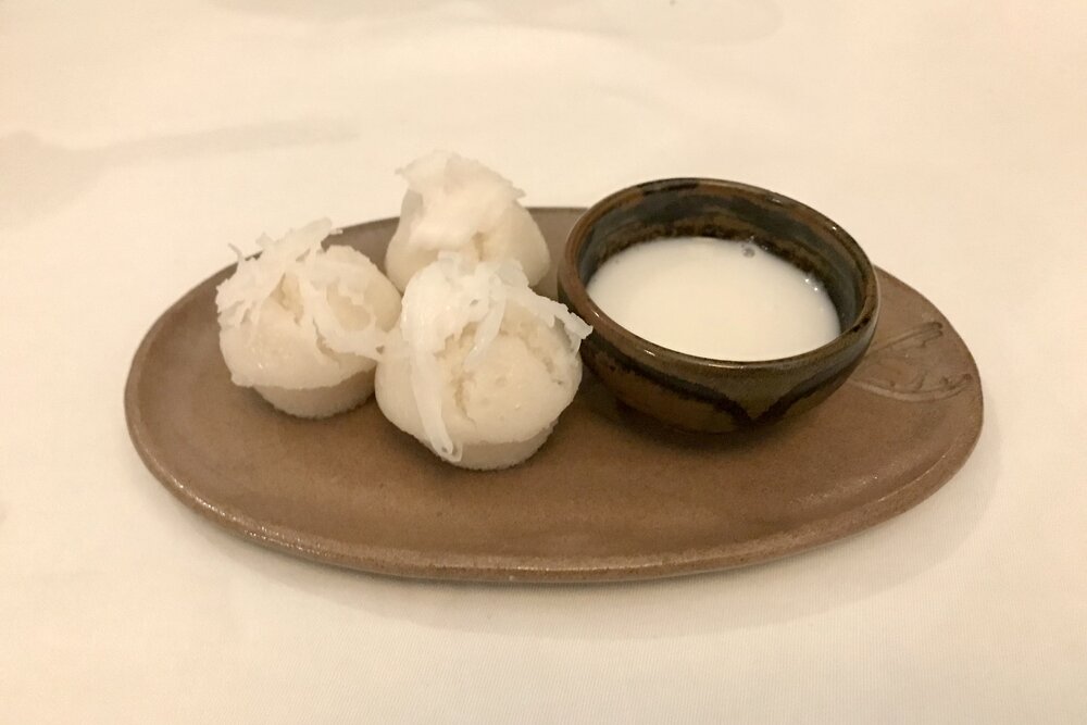 The meal itself was delightful, with a small appetizer and two different types of stir-fried meat dishes followed by a dessert of coconut mochi.
