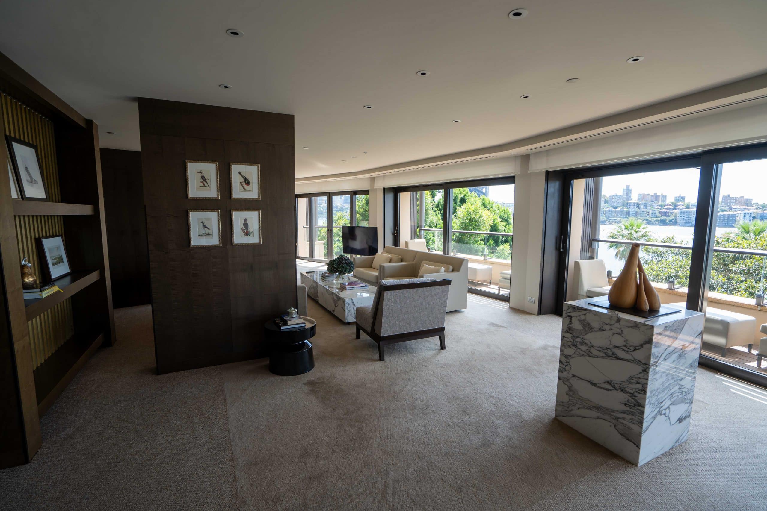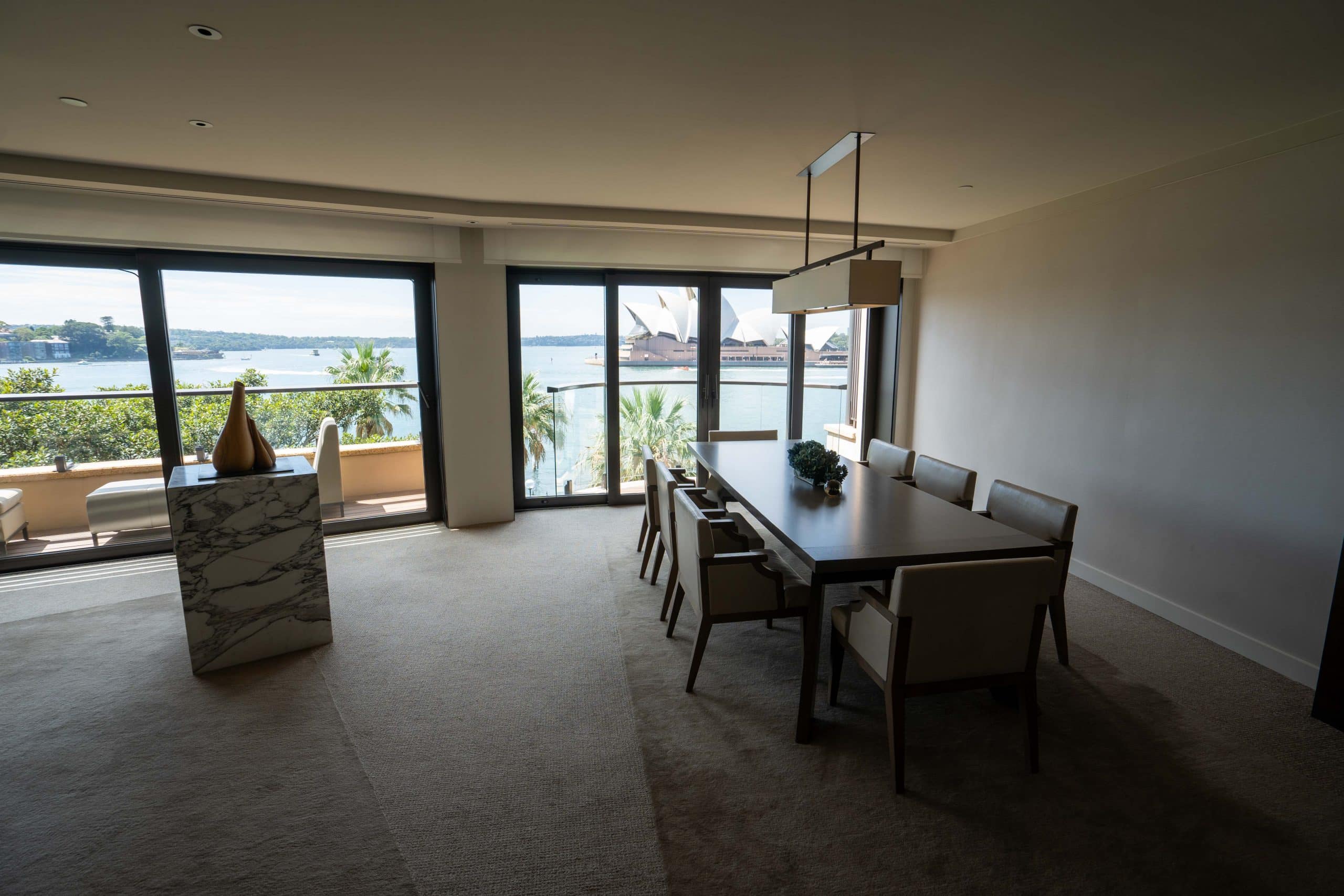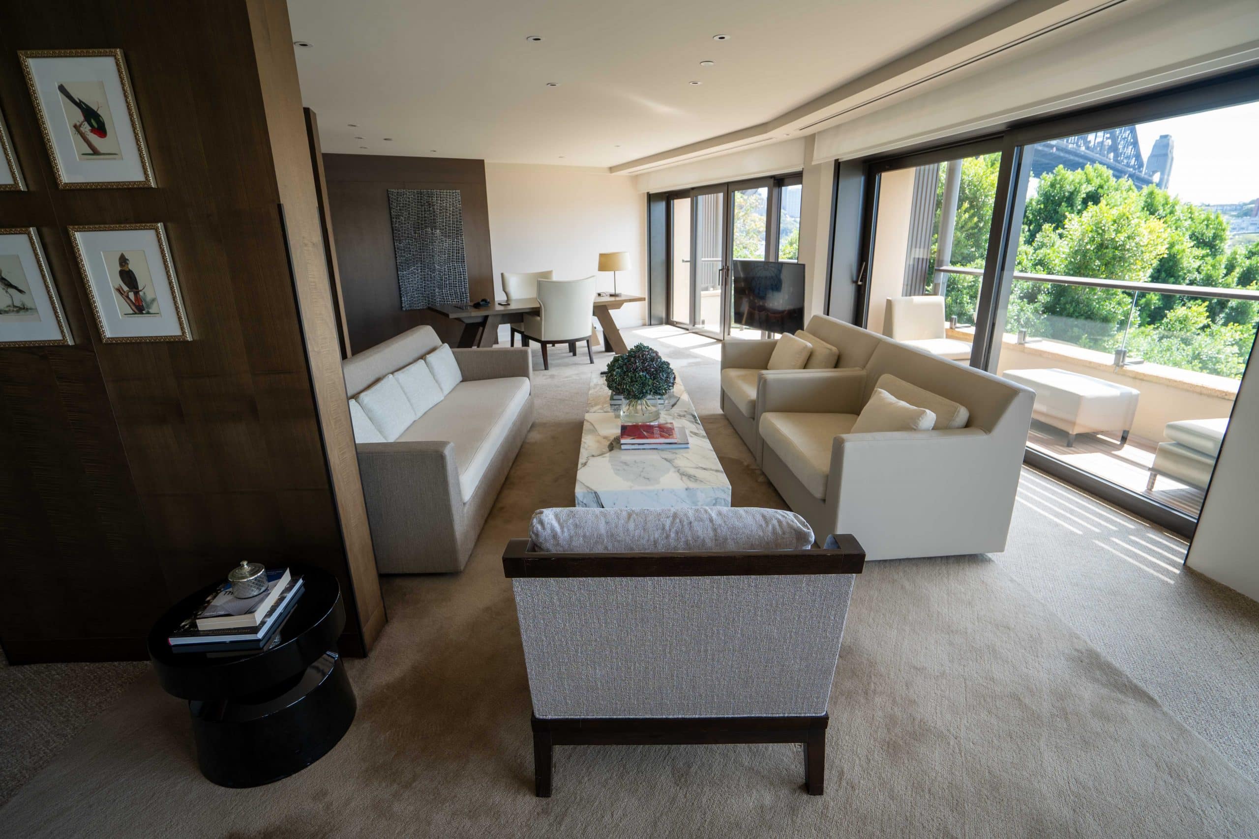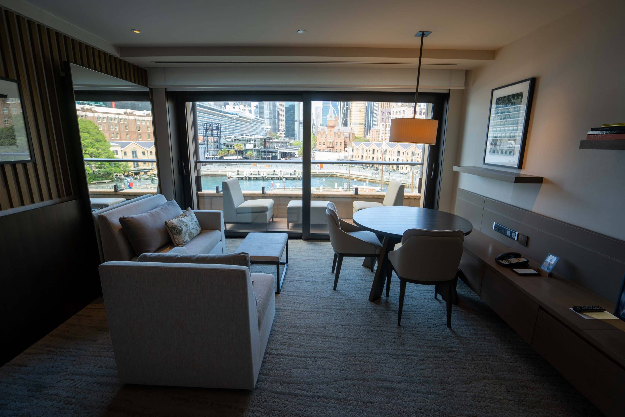 It looked to be quite a beautiful space, with natural textures and fabrics, timber flooring, and floor-to-ceiling glass windows, as well as views of the glittering harbour.