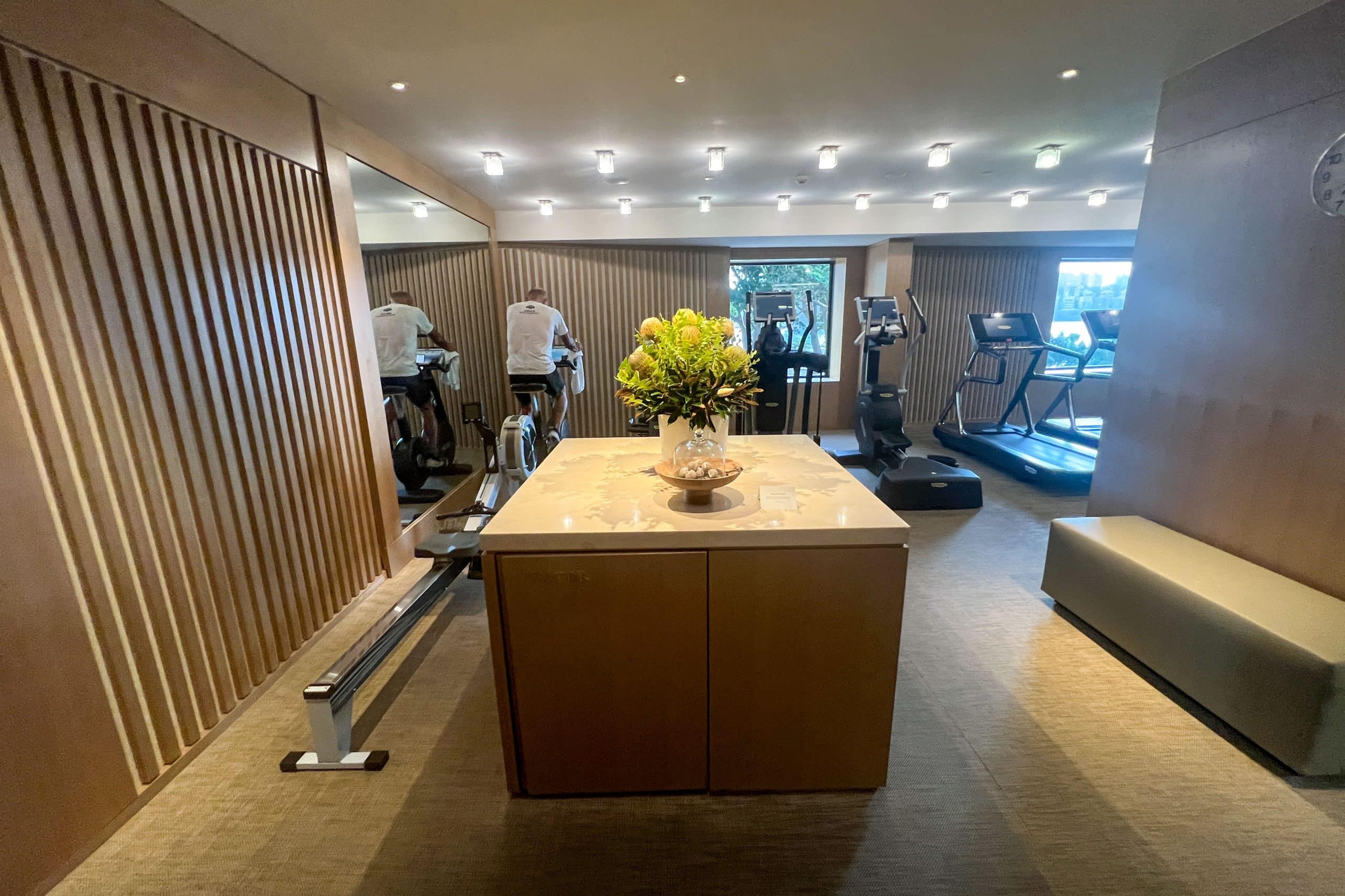 The fitness centre is situated on the third floor of the hotel, and is accessible around the clock. It affords a scenic view of Dawes Point Park, positioned just beneath the iconic Sydney Harbour Bridge; however, its equipment falls a bit short of expectations.