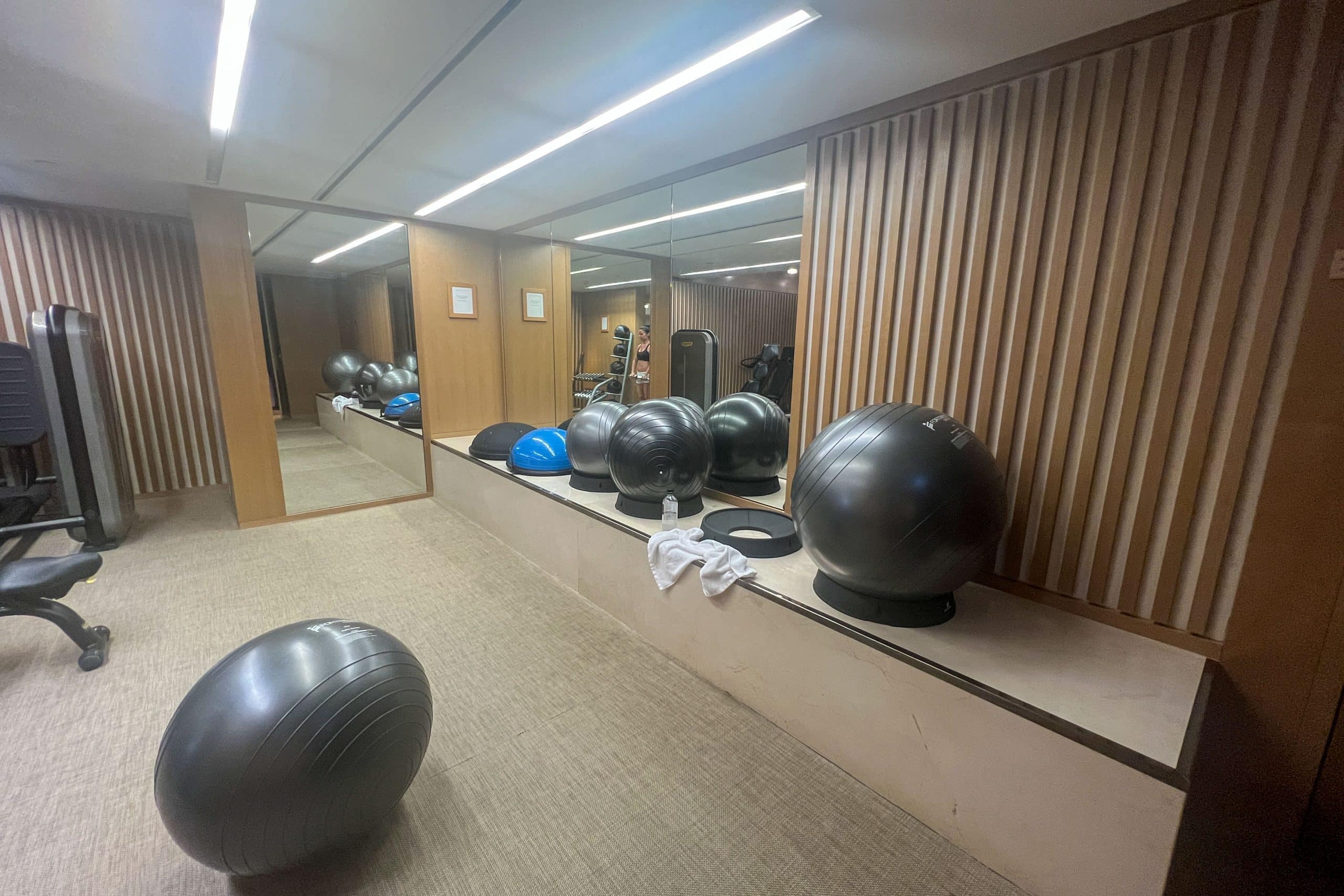 The space is relatively compact, and comes with a few limitations. While there are a few cardio machines and weight machines, regrettably, only lightweight metal weights are provided, and the standard-issue heavier weights are noticeably lacking.