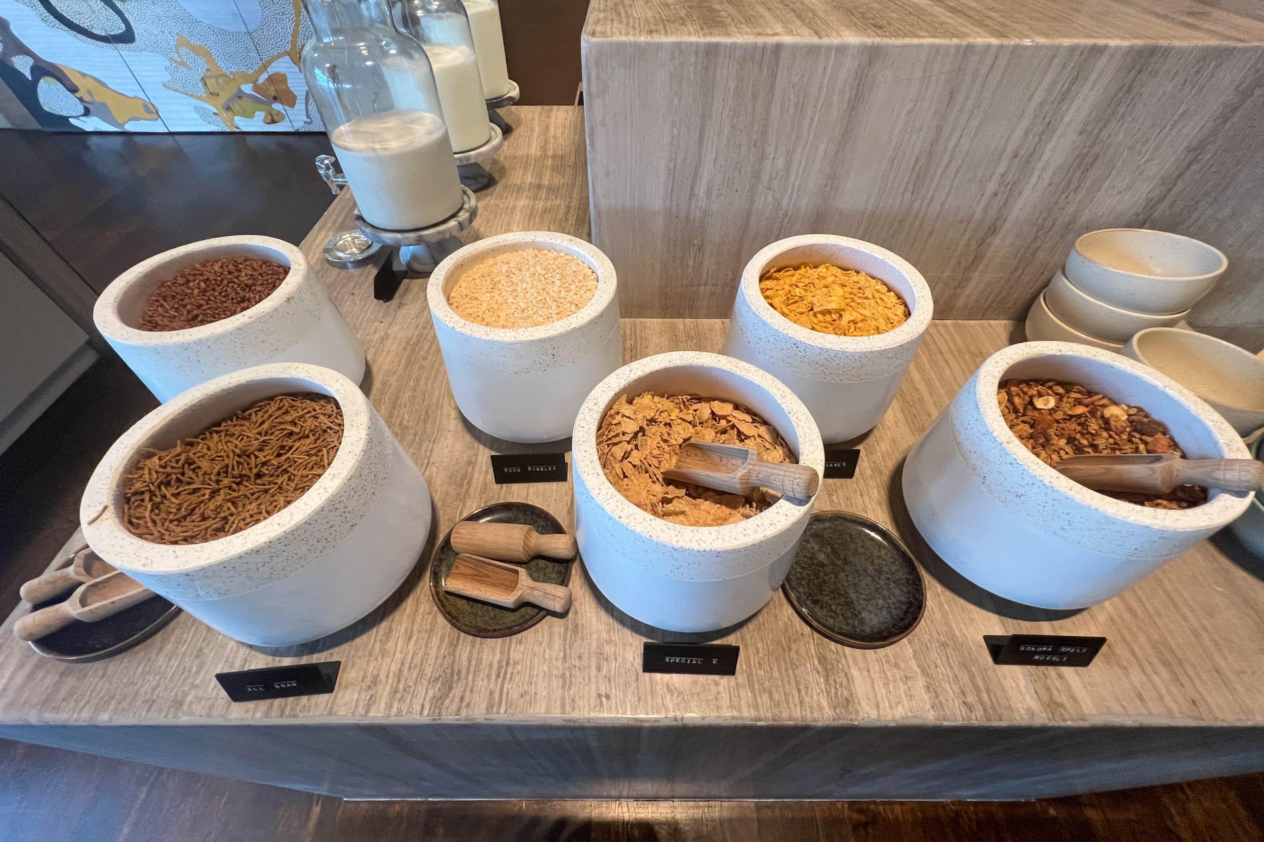 On another counter, there were cereals in elegant ceramic bowls, fresh fruit, and even honey dripping right from the comb.