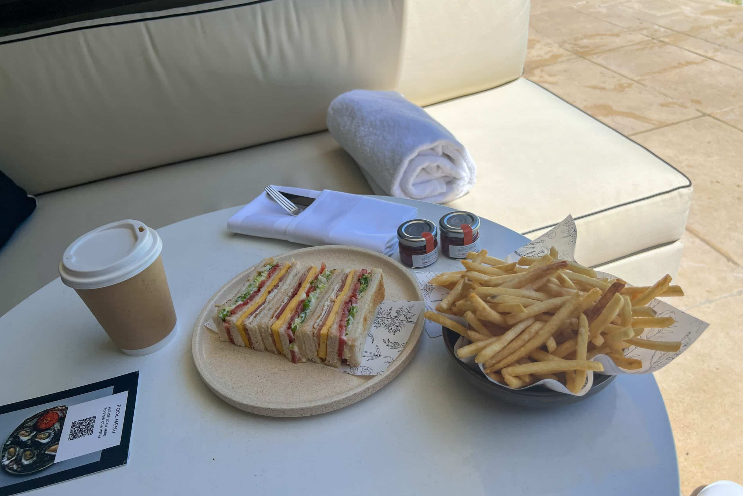 While trying to shield myself from the heat, I treated myself to a delicious sandwich, accompanied by a side of fries.