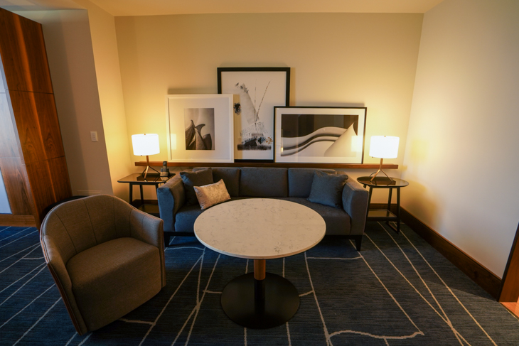 Heading inside, the living room made for an awesome spot to host guests on both nights of my stay. A lavish elongated couch was large enough to seat three, along with a comfortable armchair and additional seats that could be repositioned from other parts of the suite.