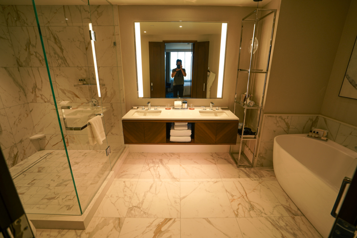 The deep-blue colour palette in the room reminded me a little of the refurbished quarters of the Ritz-Carlton, Toronto, though with less of a cinematic feel and more of a balance against warm wooden nature-inspired tones. I quite liked the interior design, and Jessy also mentioned that she preferred this style to our previous stays at the Ritz and St. Regis.