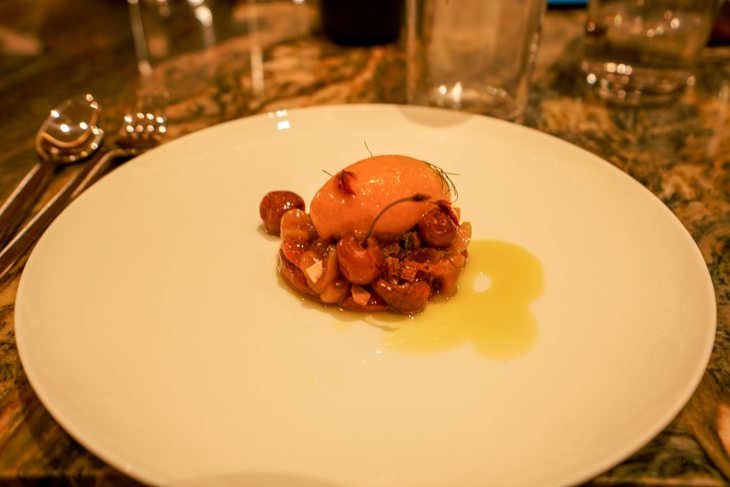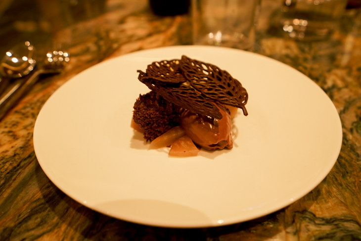 For dessert, we indulged in the apple, citrus, and chocolate creations. The chocolate dessert hit every note for me, with the exception of the bites of fermented pear sprinkled throughout, which I thought detracted from the dish rather than adding to it.