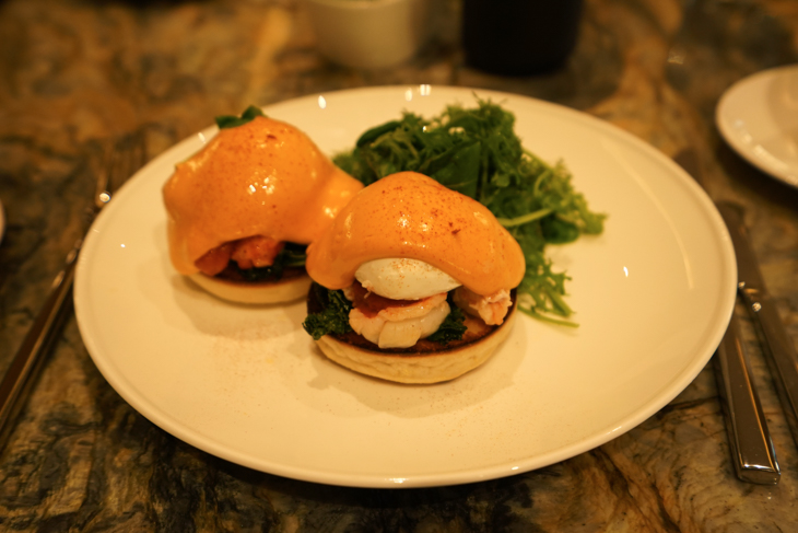 On the first morning, I enjoyed breakfast downstairs, and I invited my assistant Rachel who lives nearby to join me. We each ordered the Lobster Benedict along with black coffee.