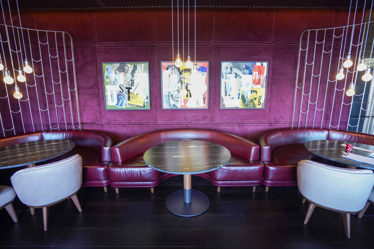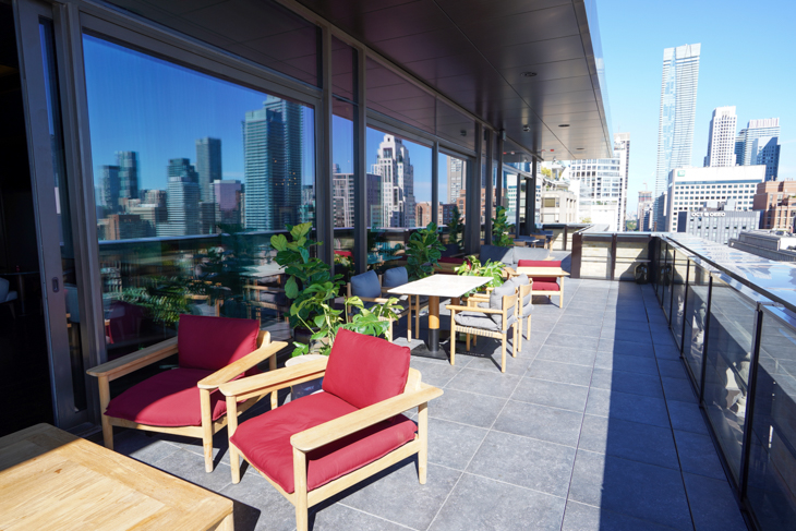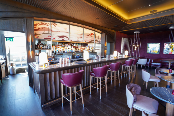 The indoor space is decked out in a dramatic shade of purple, while the outdoor space – should you snag a seat out here – affords some of the best views in town by both day and night.