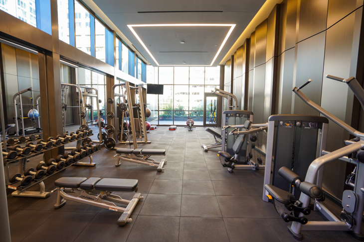 The hotel’s fitness facilities are located on the fifth floor of the South Tower.