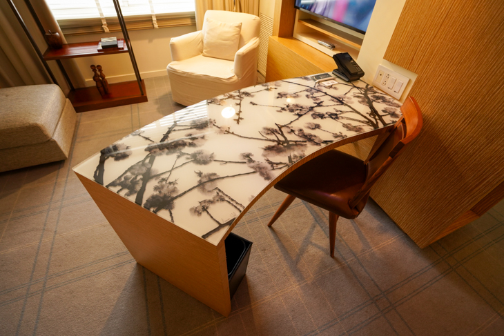 The stylish curved desk reminded me of the similar workspace back at the Park Hyatt Shanghai, a setup that I find quite conducive for productivity.