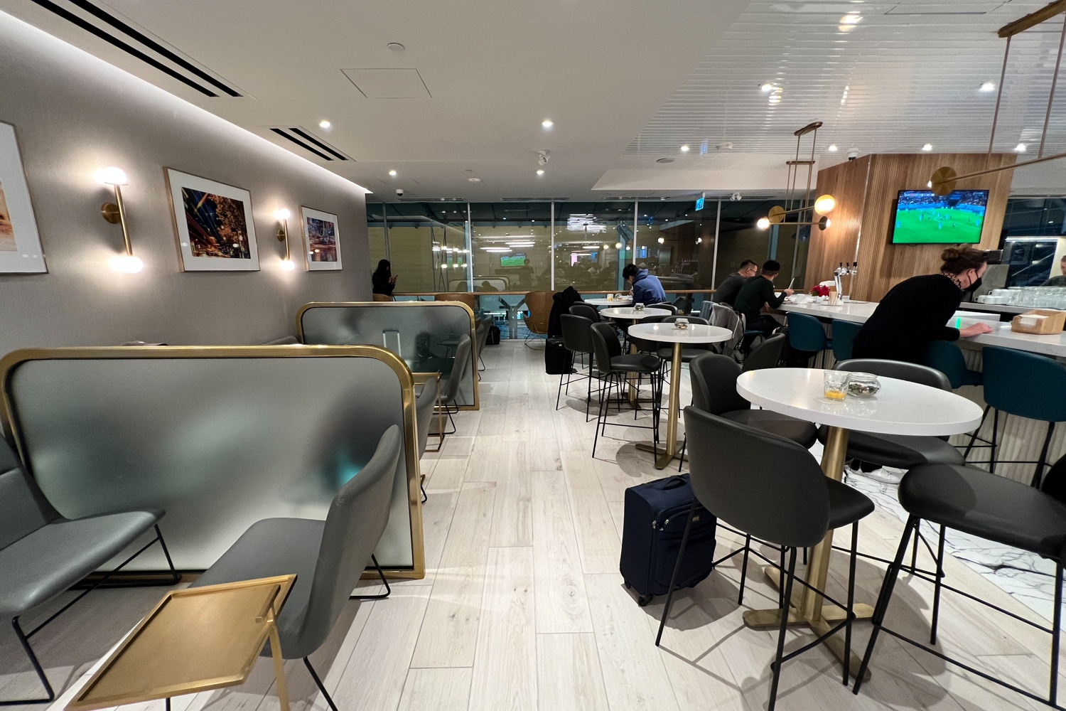 Stepping into the lounge, there are clusters of seating with plenty of space for each visitor, consisting mostly of high and low dining tables.