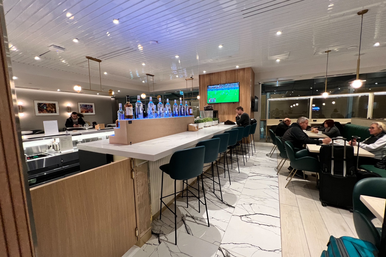 The bar area is at the forefront of the lounge, with an array of bar seating that can accommodate close to 15 visitors.